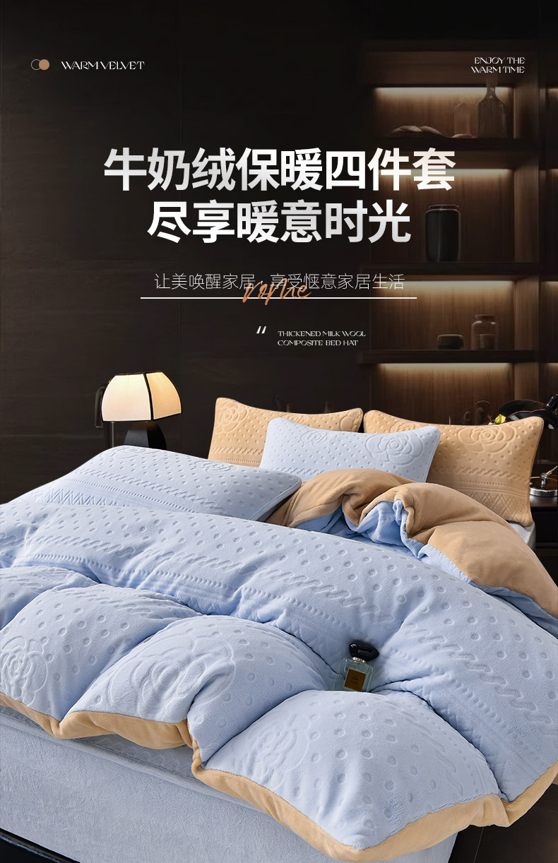 (总)好眠好梦家纺 2025新款牛奶绒复合床笠四件套-魅影,魅影-奶咖,魅影-星空灰,魅影-月光白