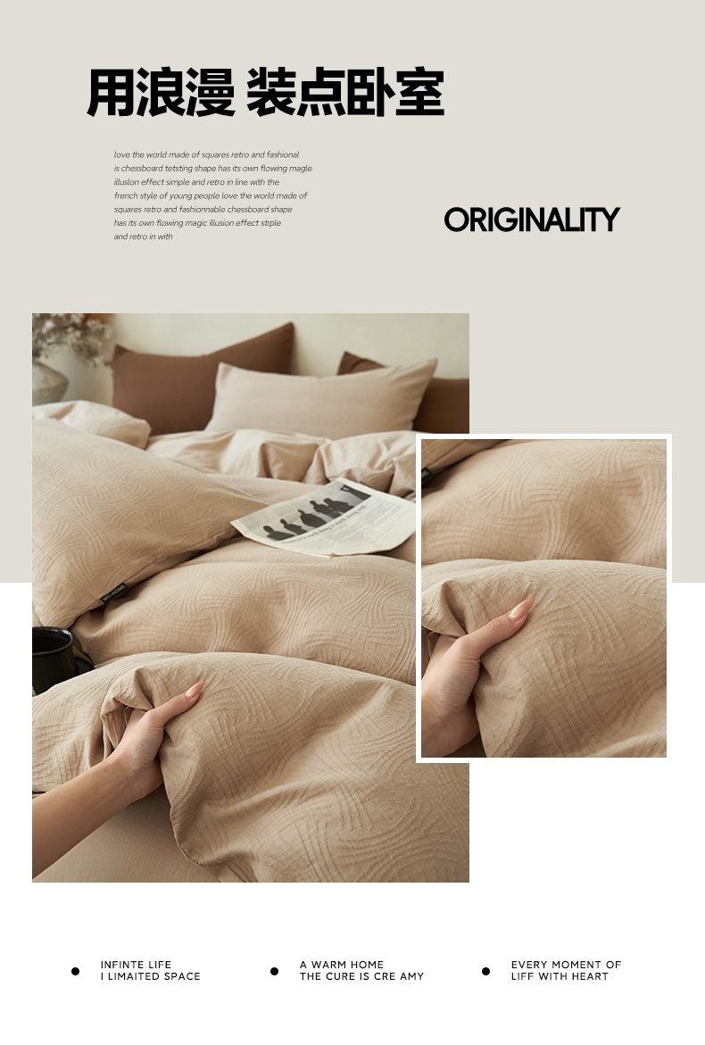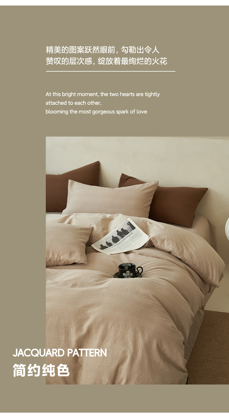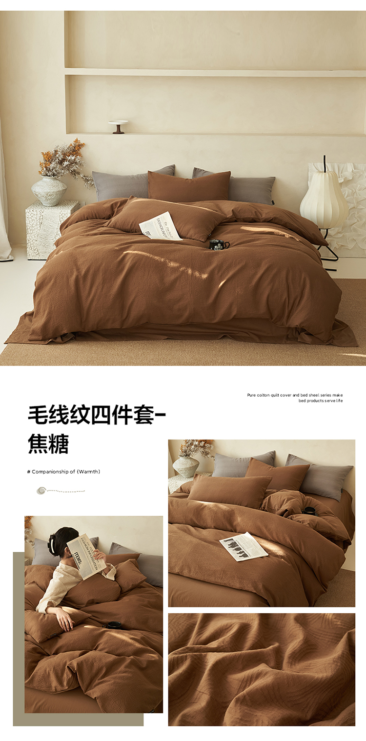 商品名称:2025新款纯棉水洗棉三层线球纹提花四件套 毛线纹四件套-驼色