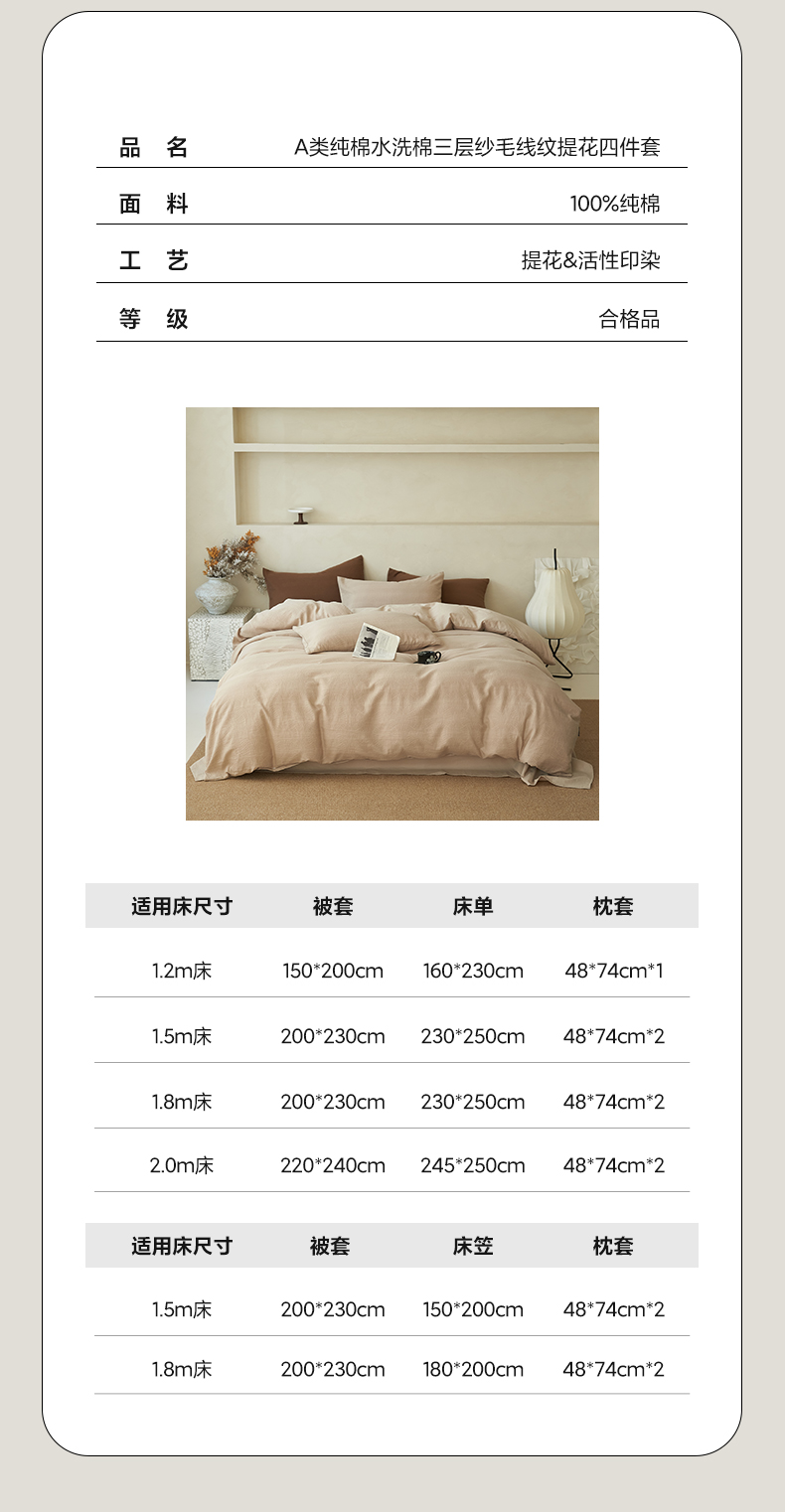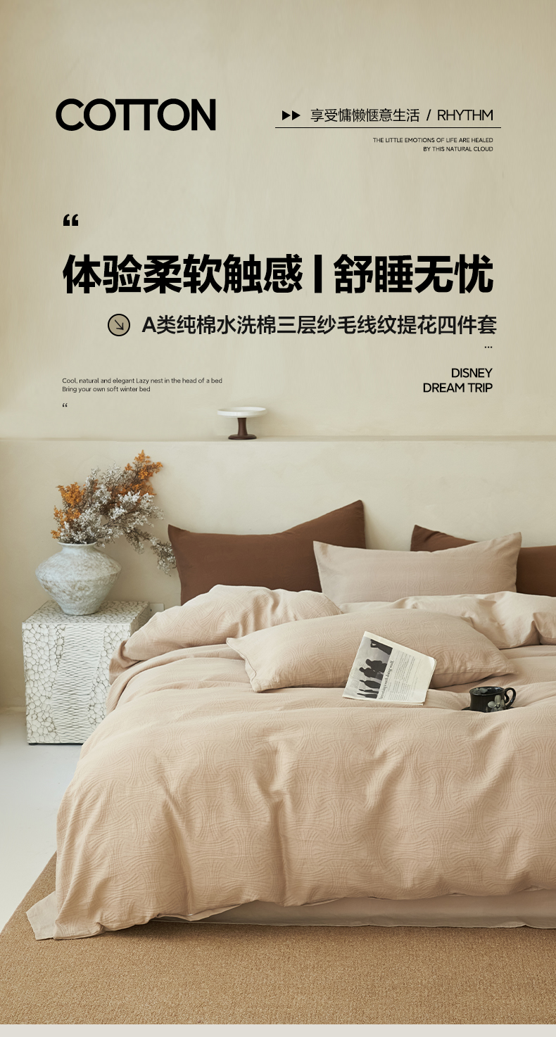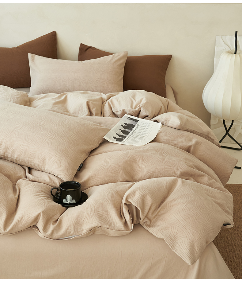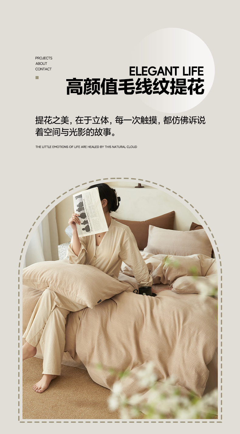 商品名称:2025新款纯棉水洗棉三层线球纹提花四件套 毛线纹四件套-驼色