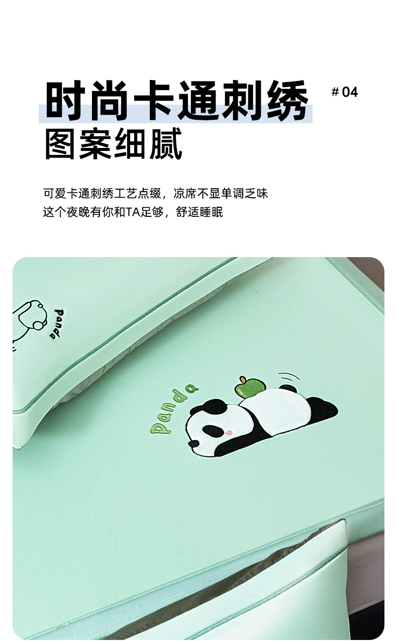 当前位置: 91家纺网 > 商品网购 > 床上用品 > 凉席 > 冰丝席 > 全季家居 2025新款5A抗菌碳光萌趣熊猫系列贴布绣冰丝席 床席-水绿