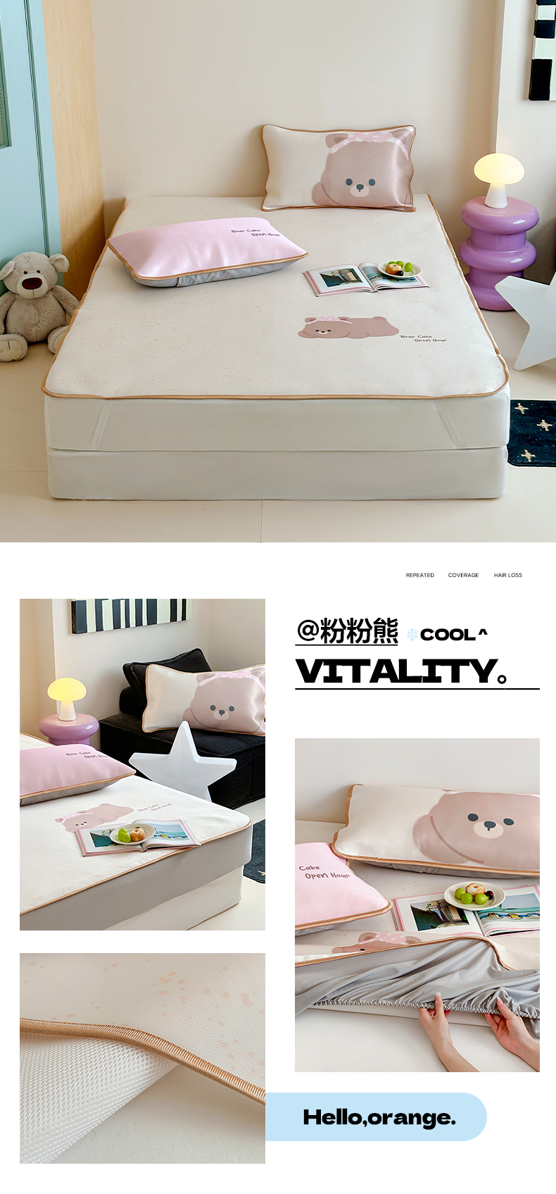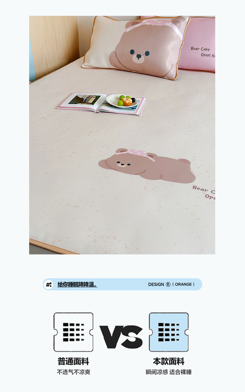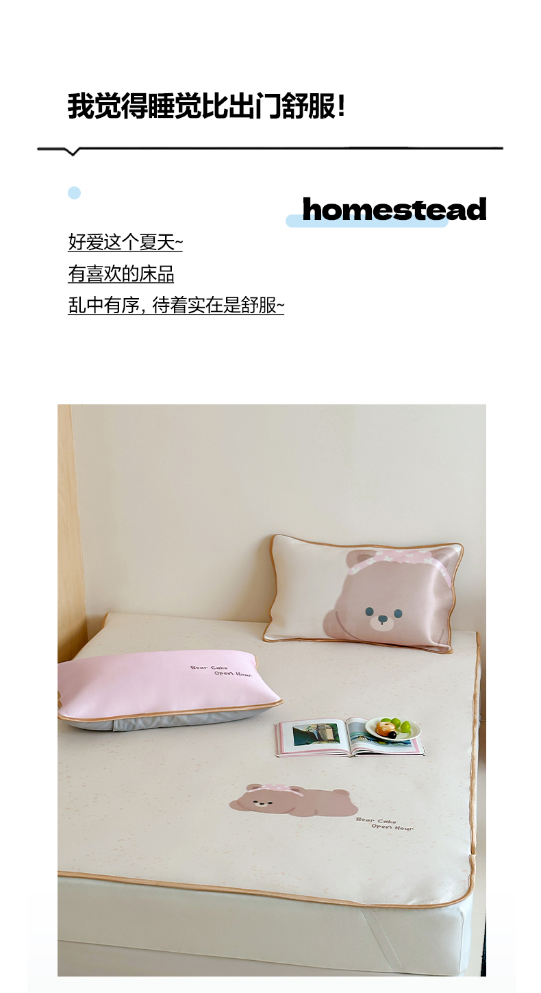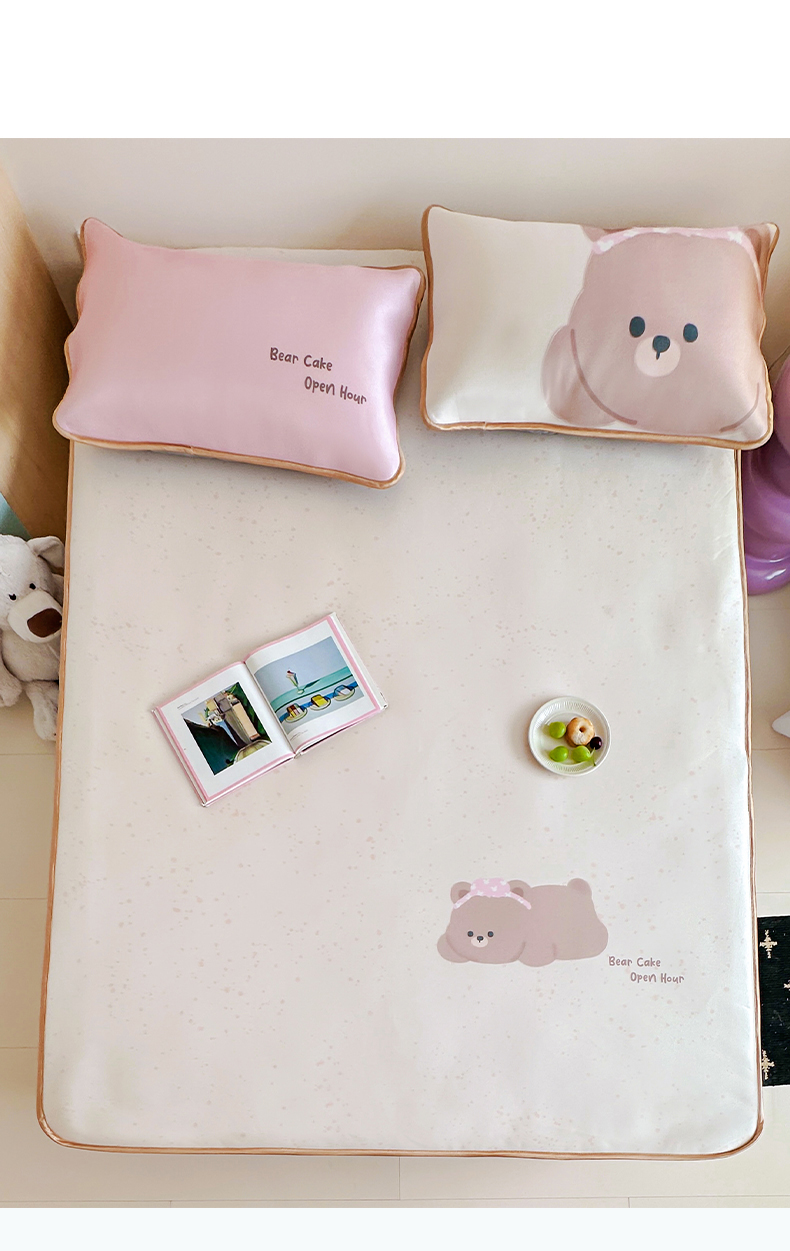 • 91家纺网 家纺一手货源 找家纺 如一2025A类ins大版数码卡通印花冰丝凉感席 粉粉熊-床席