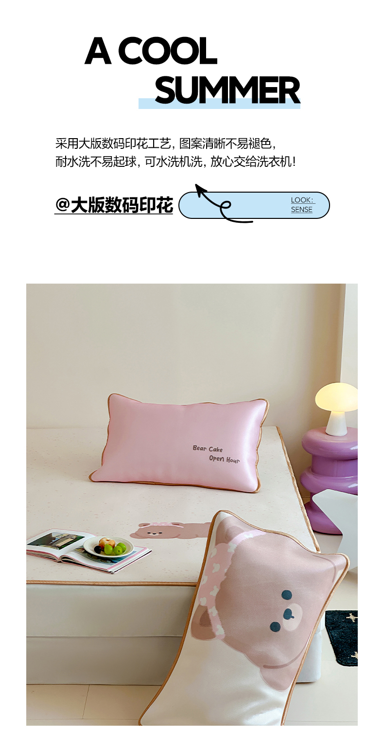 如一2025A类ins大版数码卡通印花冰丝凉感席 粉粉熊-床席