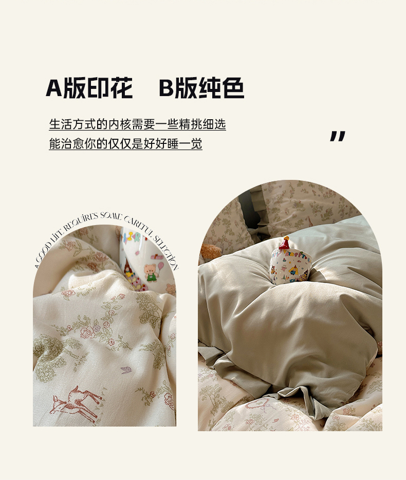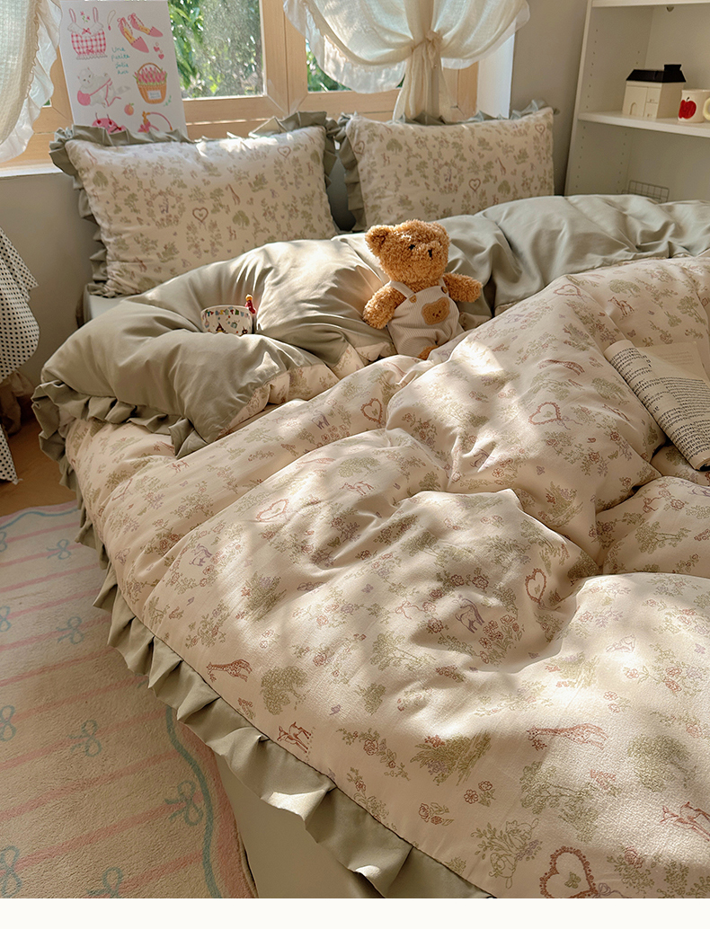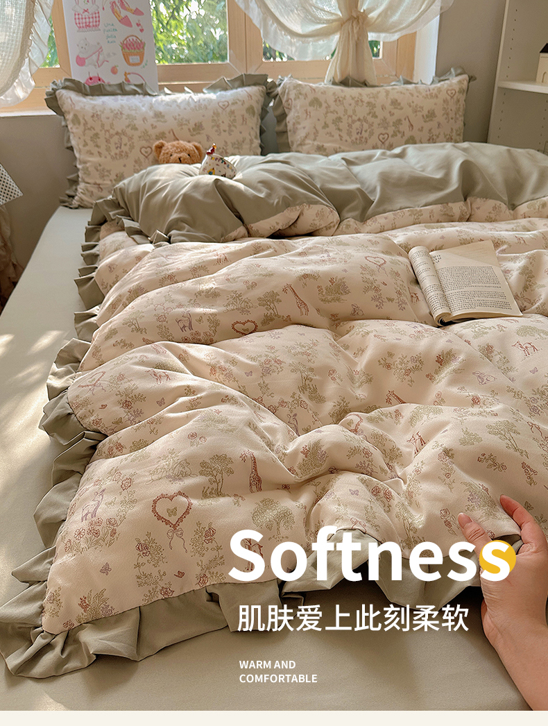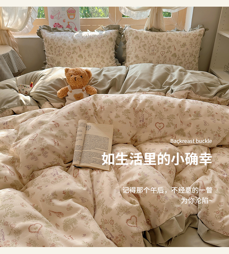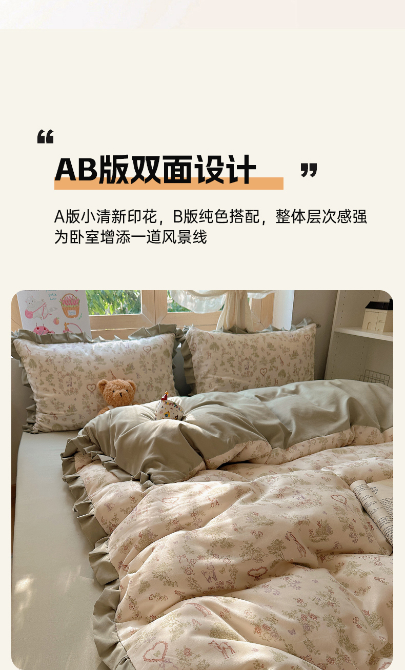 当前位置: 91家纺网 > 商品网购 > 床品套件 > 四件套 > 双层纱四件套 > 韩巢家纺 2025新款针织双层纱花边款被套直播热销款四件套学生宿舍床单三件套-(提供卖家秀) 魔法森林