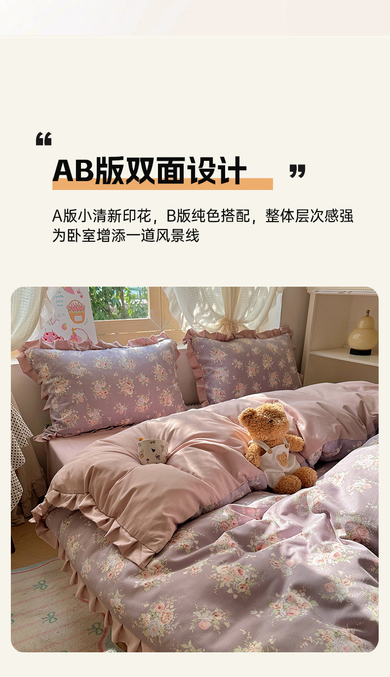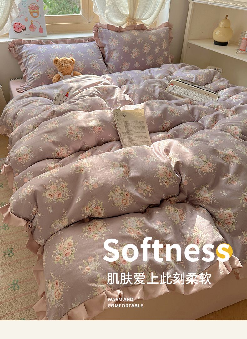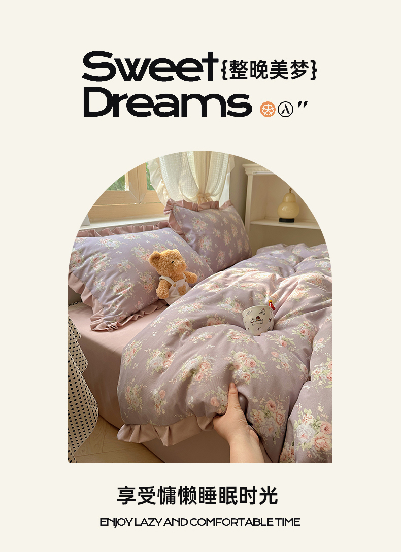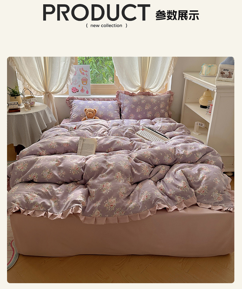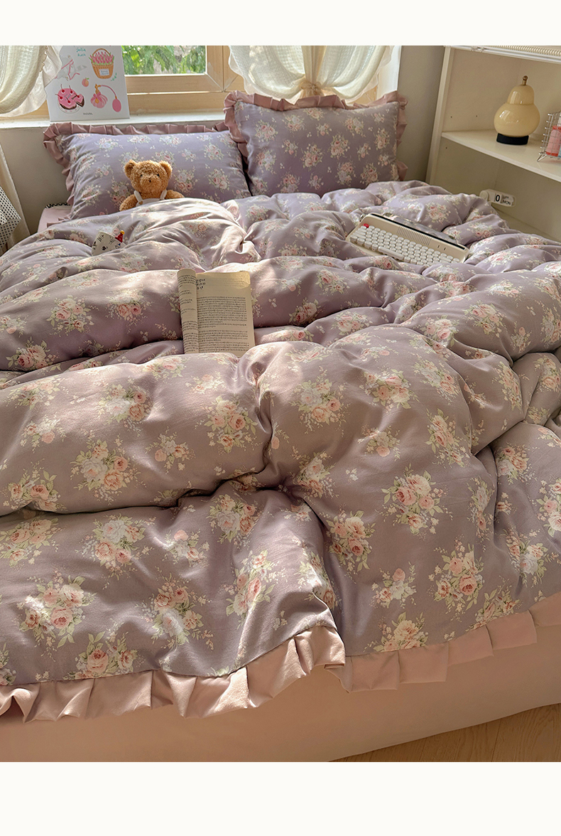 当前位置: 91家纺网 > 商品网购 > 床品套件 > 四件套 > 双层纱四件套 > 韩巢家纺 2025新款针织双层纱花边款被套直播热销款四件套学生宿舍床单三件套-(提供卖家秀) 悠然紫