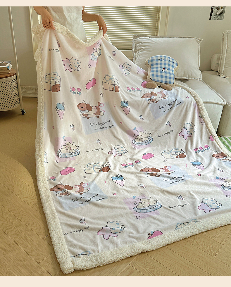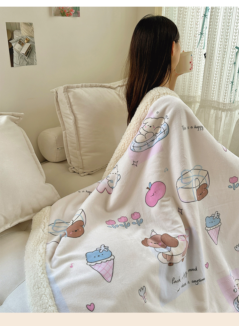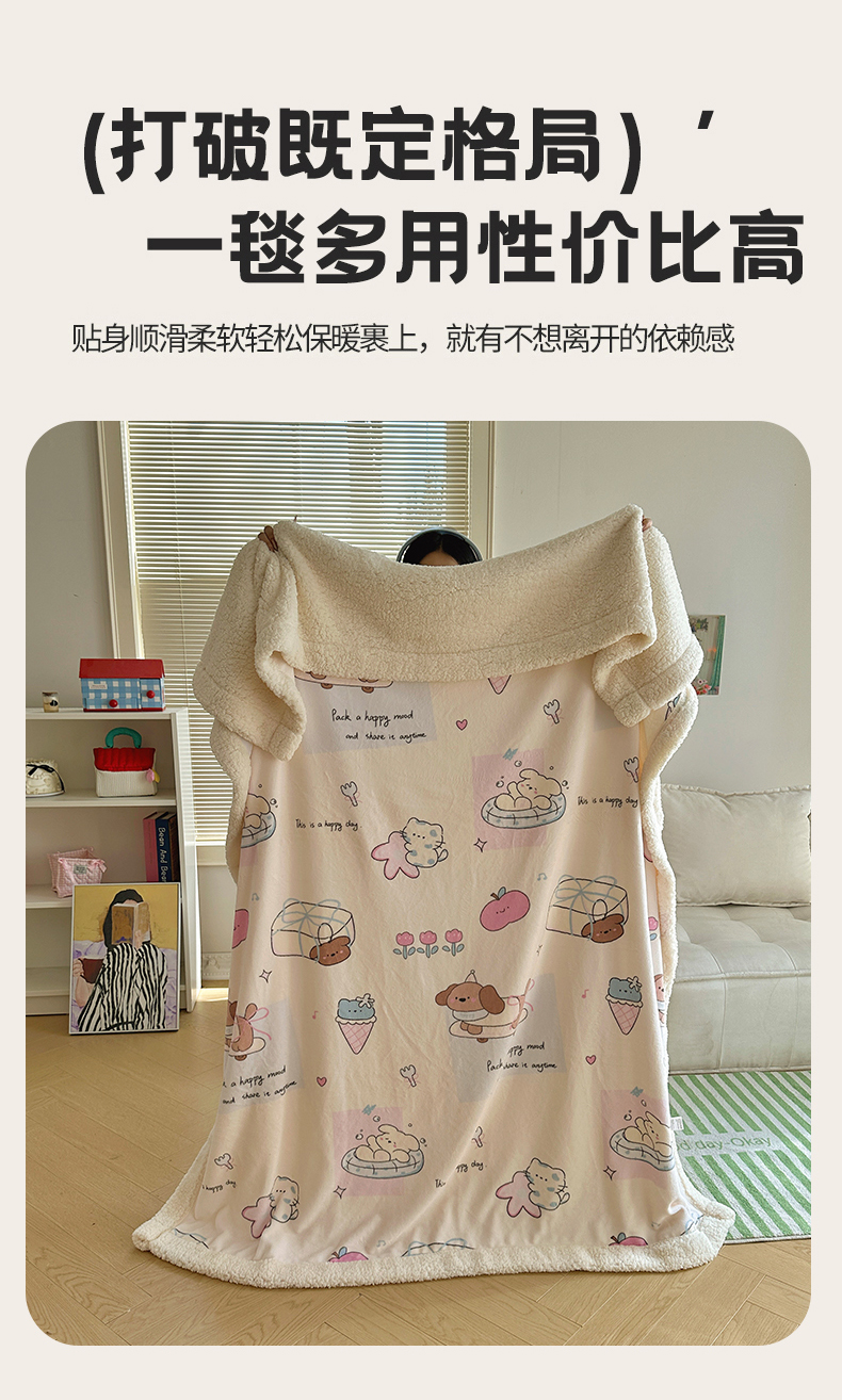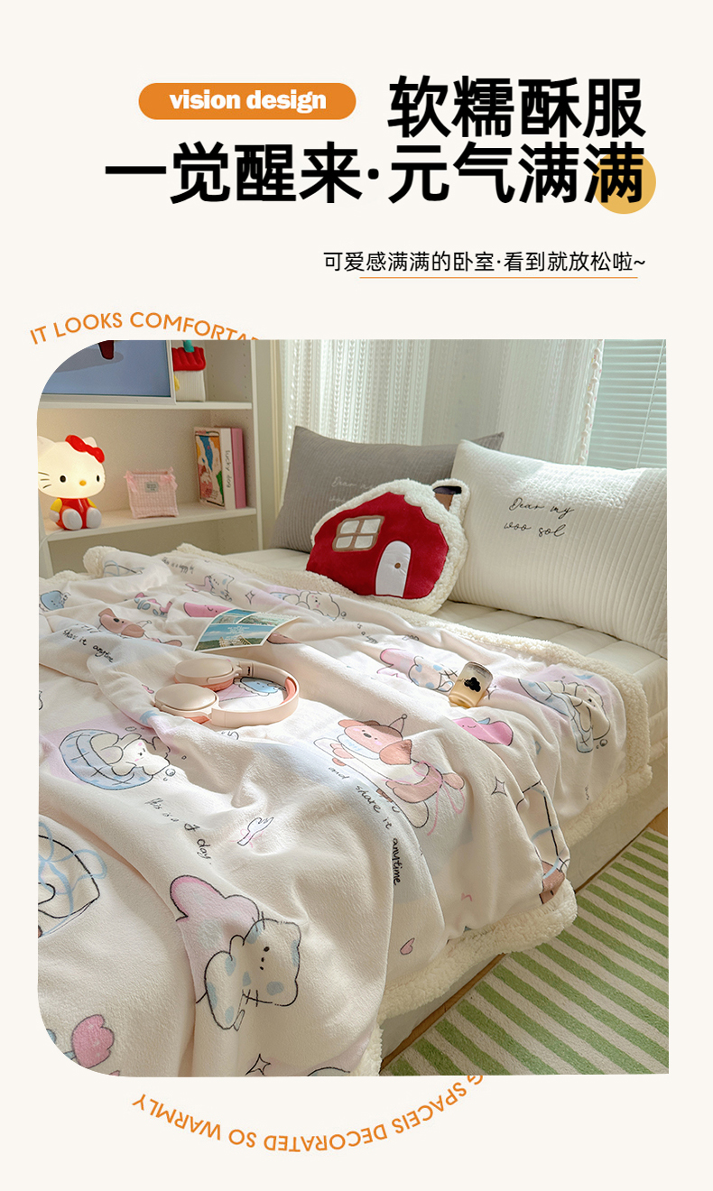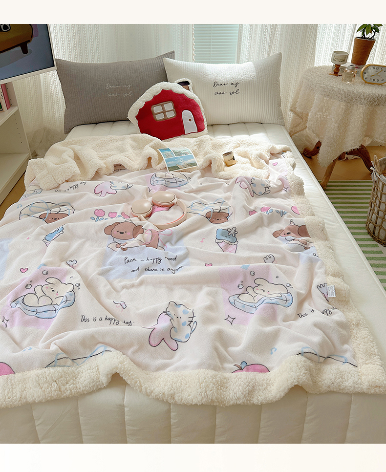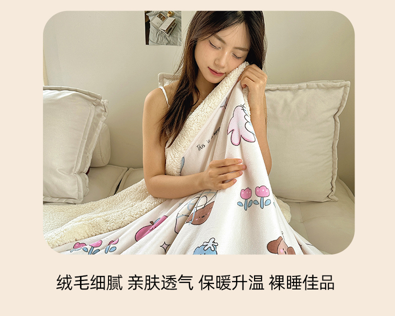 商品名称:六巷胡同 2025新款INS卡通A类牛奶绒羊羔绒毛毯毯子 芭宠假日米
