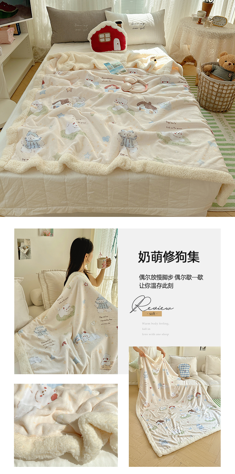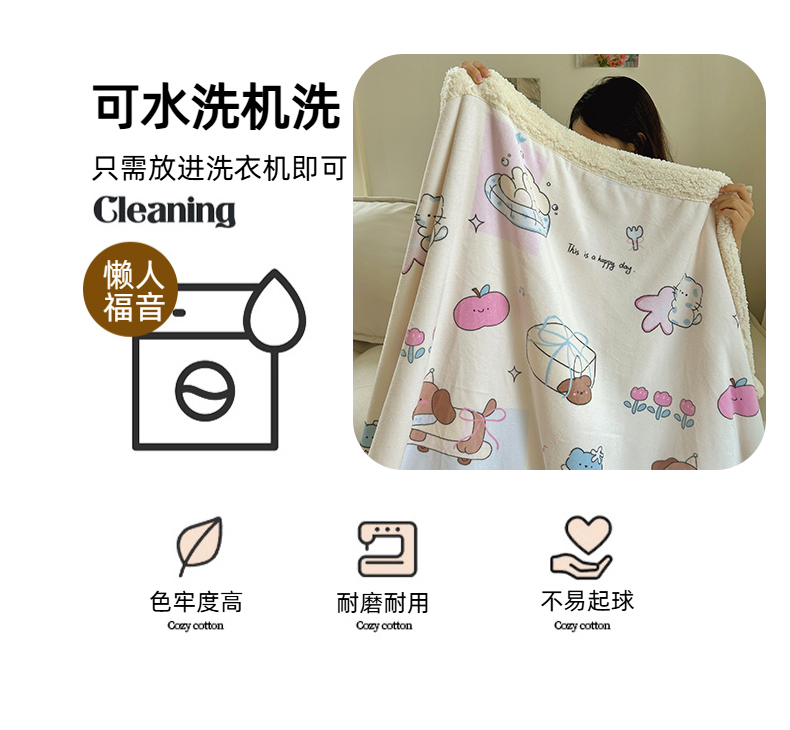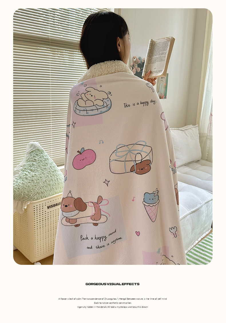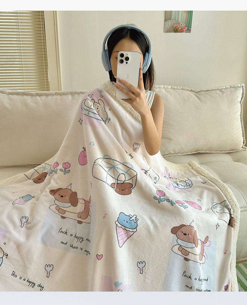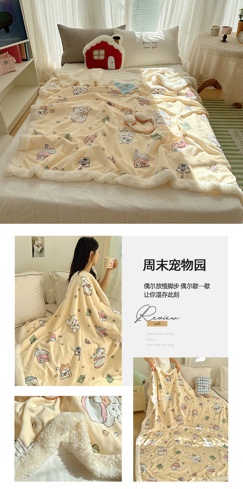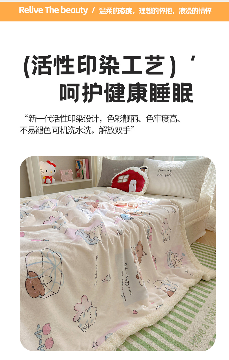 商品名称:六巷胡同 2025新款INS卡通A类牛奶绒羊羔绒毛毯毯子 芭宠假日米
