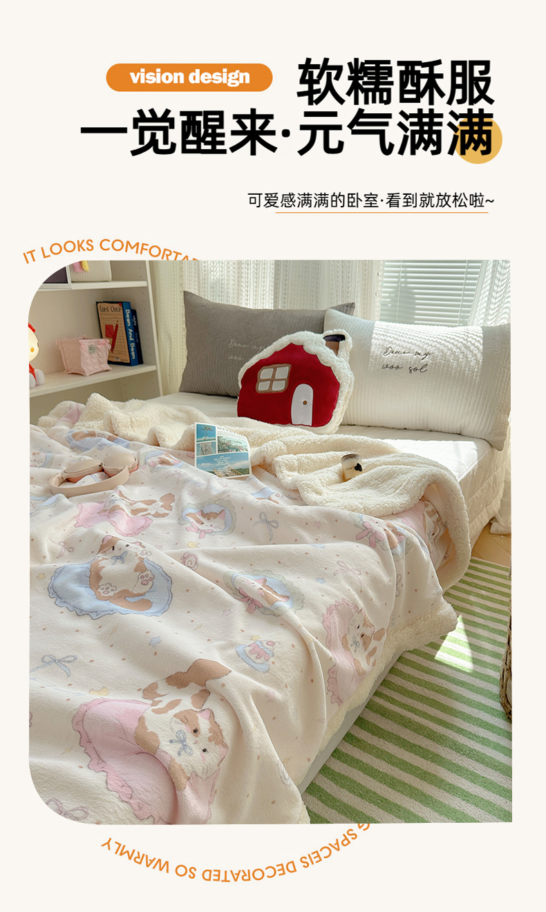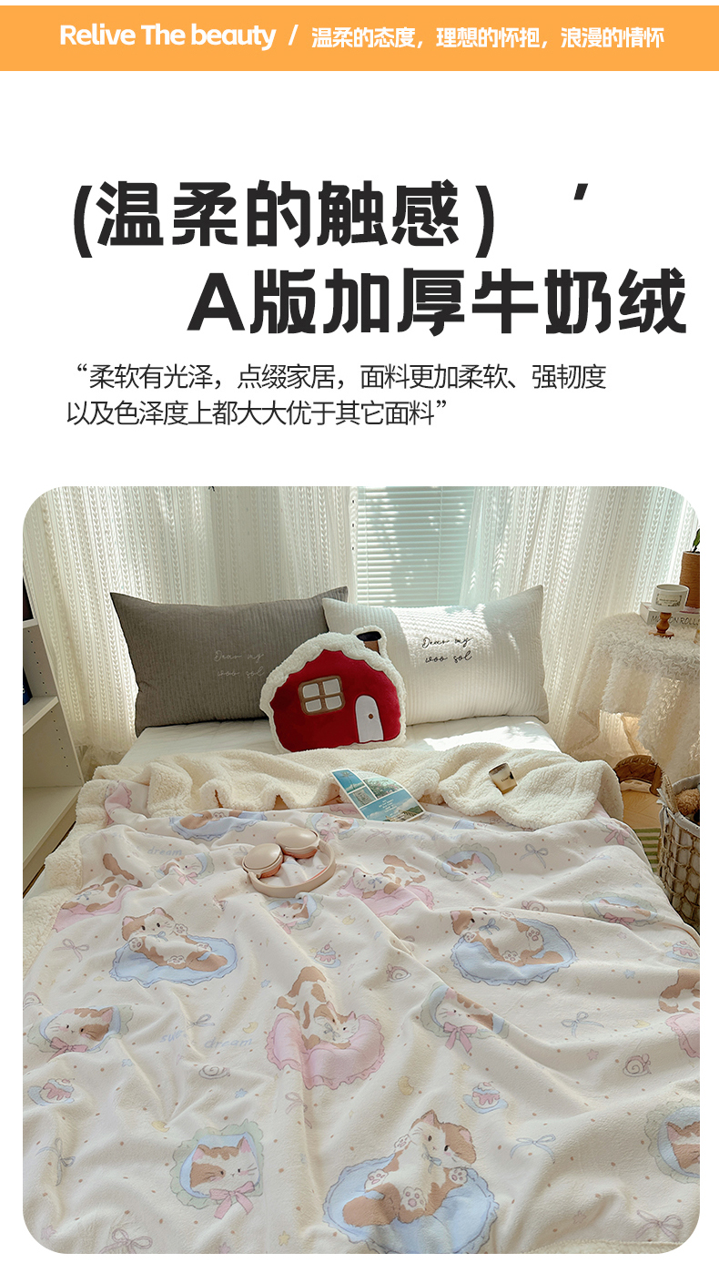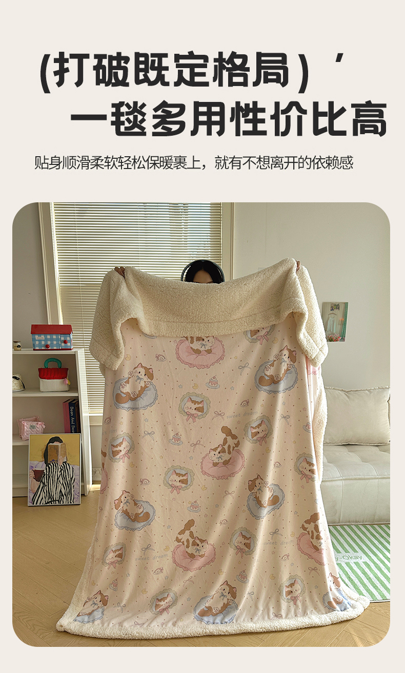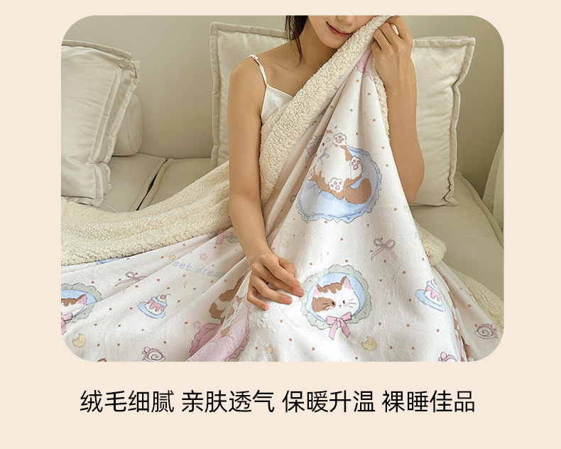 商品名称:六巷胡同 2025新款INS卡通A类牛奶绒羊羔绒毛毯毯子 萝莉猫咪崽