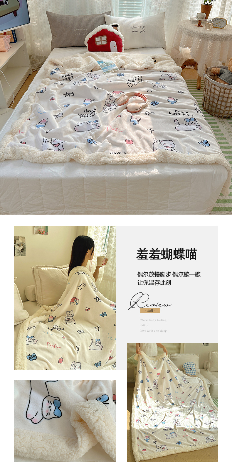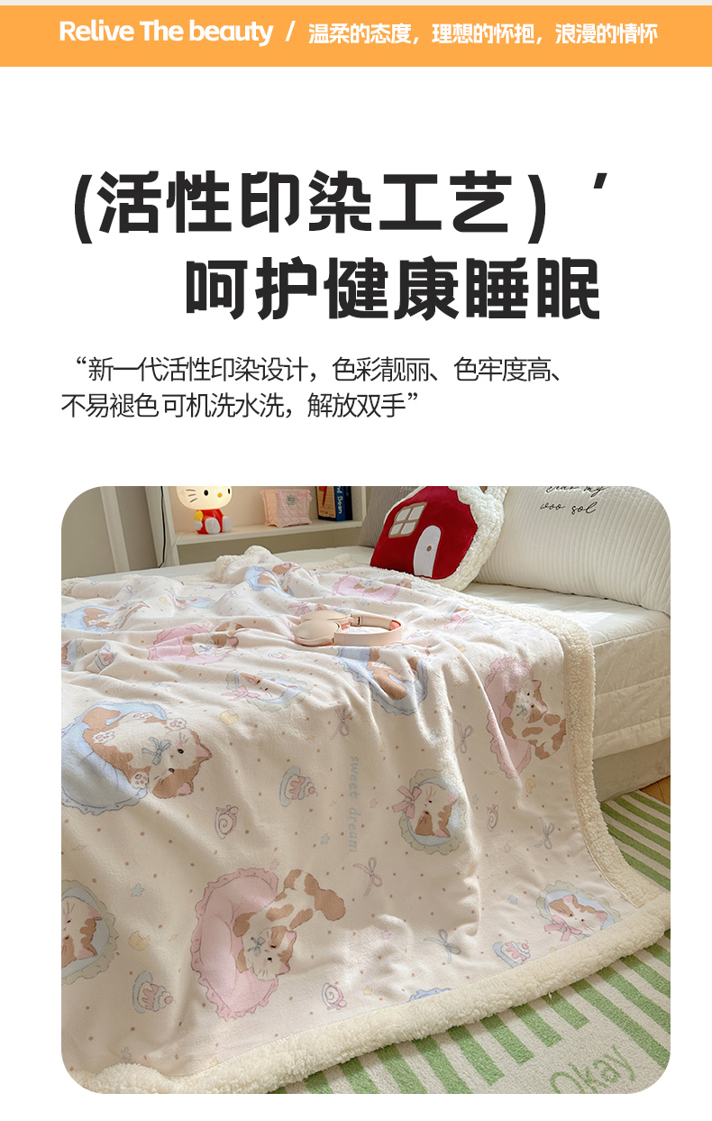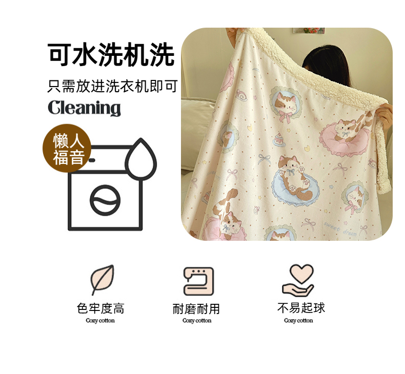 商品名称:六巷胡同 2025新款INS卡通A类牛奶绒羊羔绒毛毯毯子 萝莉猫咪崽