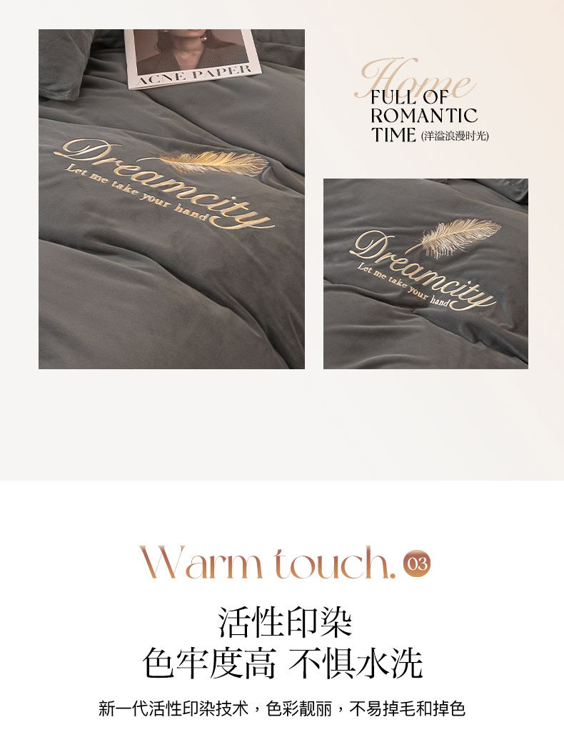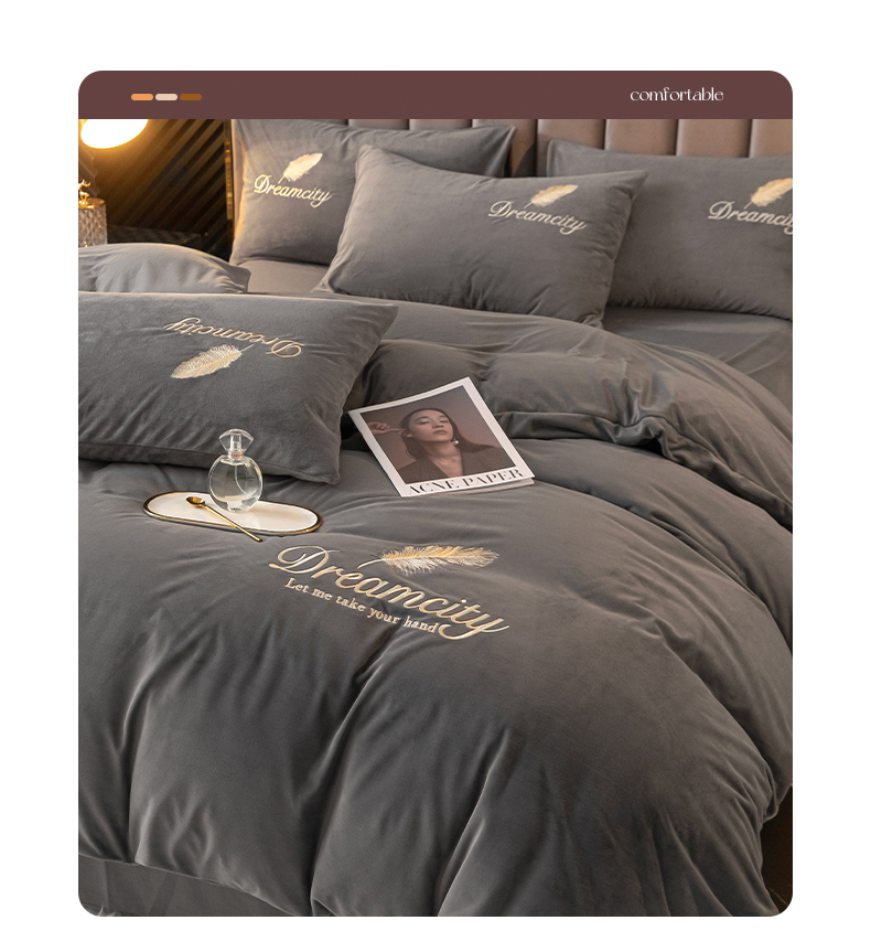 当前位置: 91家纺网 > 商品网购 > 床品套件 > 四件套 > 水晶绒四件套 > 如一 2025新款水晶绒纯色刺绣轻羽系列四件套 轻羽-高级灰