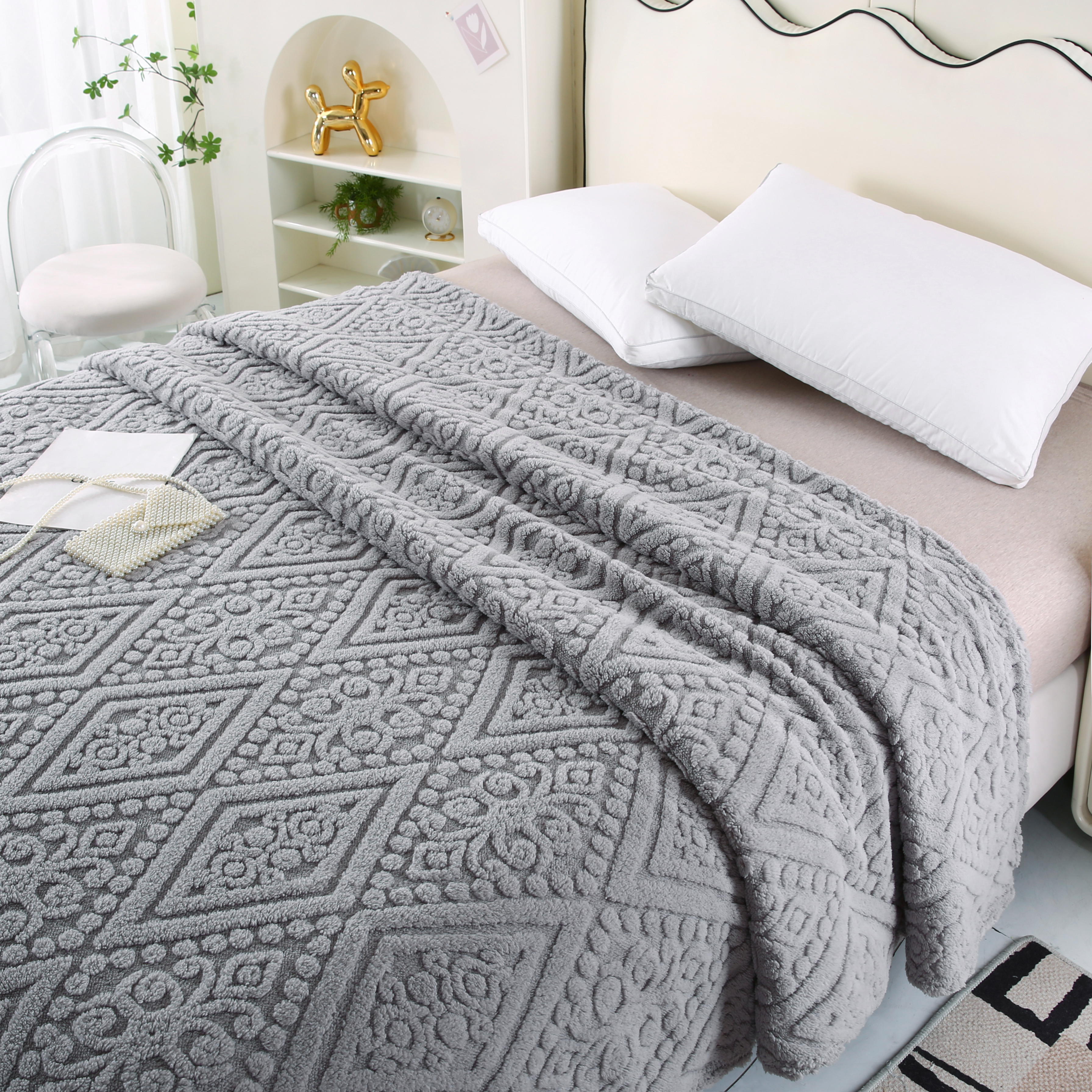 (总)巴木赫 2024新款提花朵朵绒双层羊羔绒毯,茶绿,粉色,咖啡,孔雀蓝,浅灰,浅驼