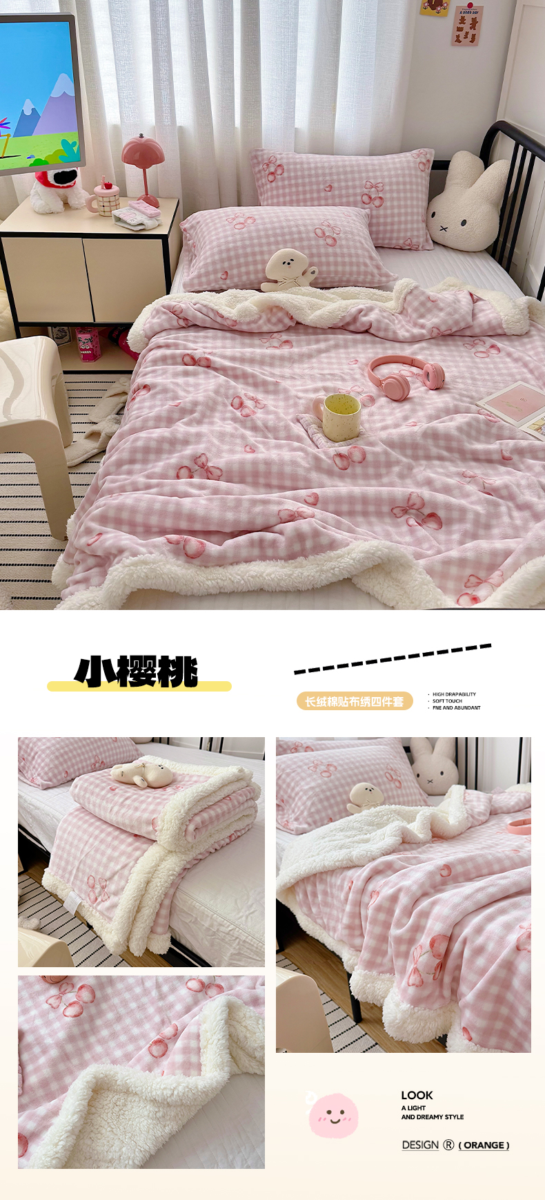 商品名称:大元 2025新款ins加厚小清新牛奶绒羊羔绒毛毯午睡毯沙发盖毯 小樱桃