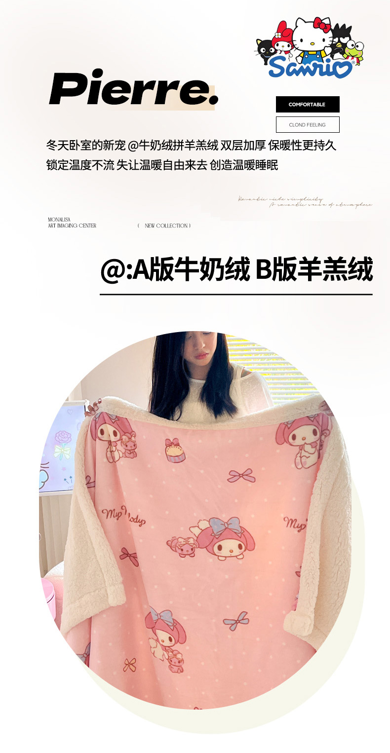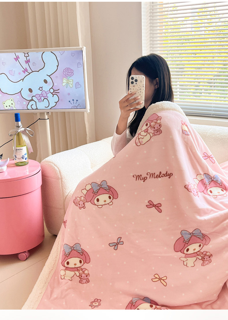 当前位置: 91家纺网 > 商品网购 > 毛毯休闲毯绒毯 > 毛毯 > 暮思家居 2025新款三丽鸥正版授权少女可爱卡通加厚牛奶绒羊羔绒毛毯多功能四季毛毯 羊羔绒-蝴蝶结美乐蒂