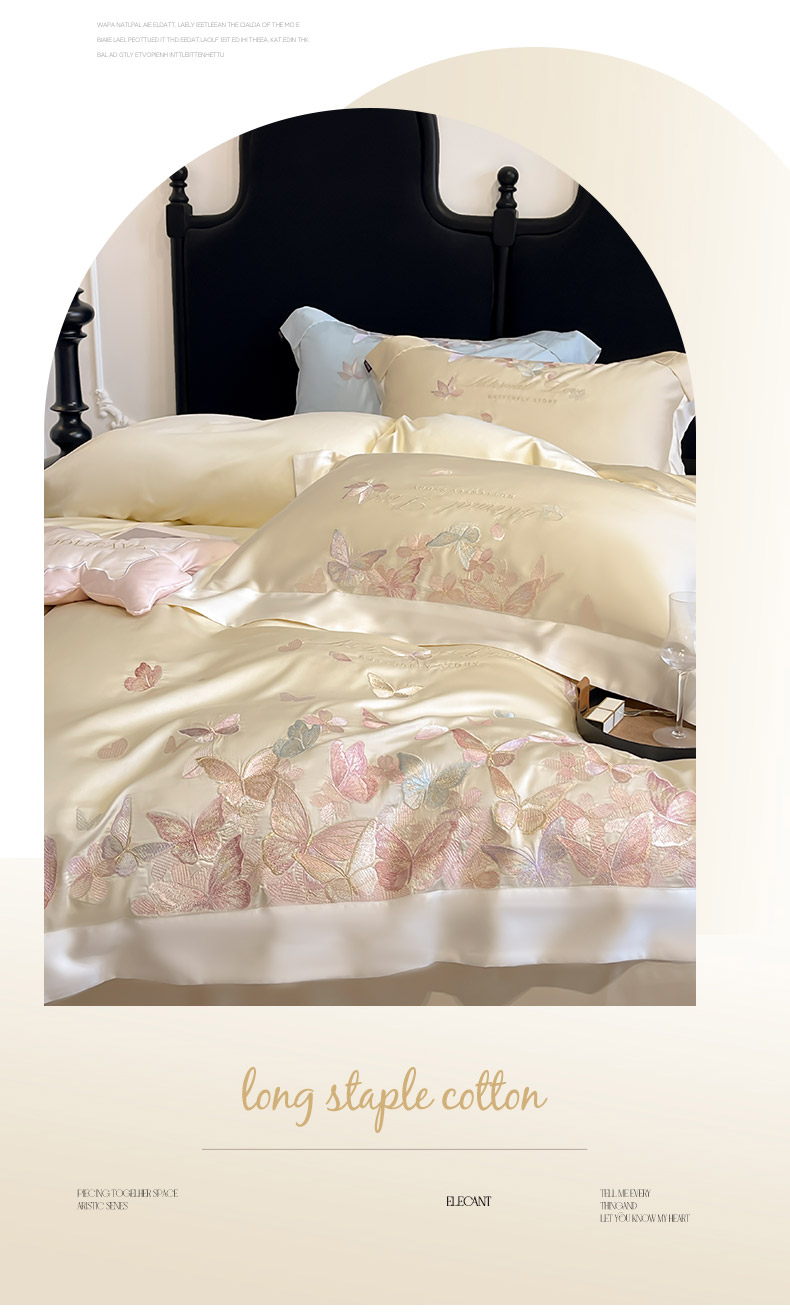 2025直播爆款A类贡缎长绒棉四件套纯棉全棉重工刺绣被套床单高端拼接床上用品 七彩蝶梦-奶芙黄
