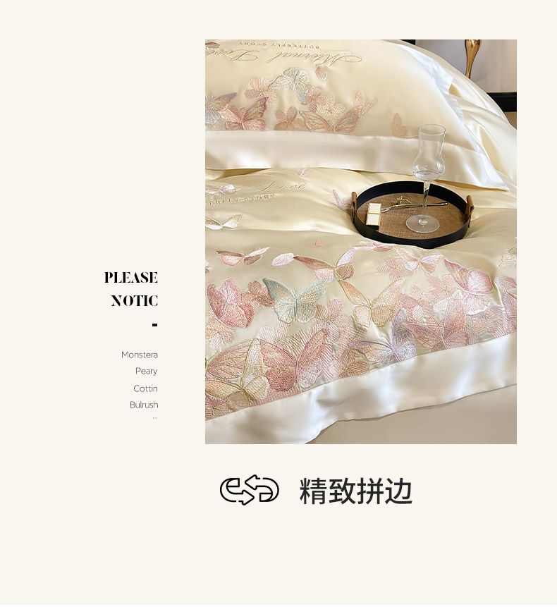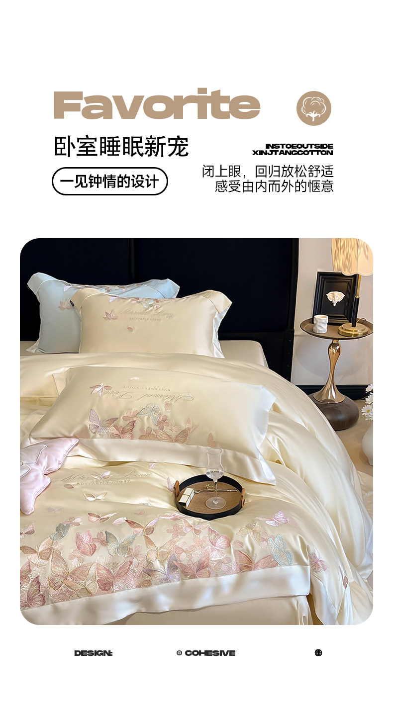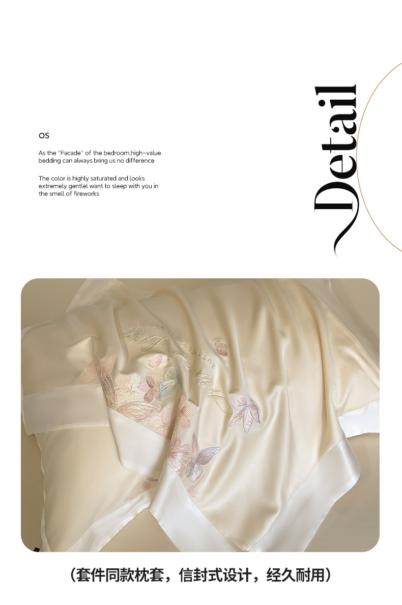 商品名称: 2025直播爆款A类贡缎长绒棉四件套纯棉全棉重工刺绣被套床单高端拼接床上用品 七彩蝶梦-奶芙黄