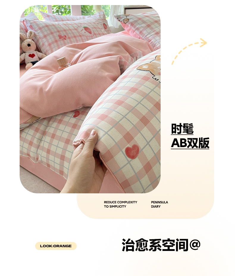 (总)本制 2025秋冬新款全棉混纺磨毛印花四件套,春熙-逍遥游,草莓泡芙-杨妃粉,憨睡-陶土色,花涧小兔-杨妃粉,花千束-杨妃粉,绿野仙踪-逍遥游,绿茵-蜜橙,落花-蜜橙,沫然-杨妃粉,秋意-逍遥游,甜心熊-陶土色,霞光(粉)-杨妃粉,霞光(橘)-蜜橙,霞光(蓝)-无心绿,霞光(紫)-杨妃粉,夏梦花园-杨妃粉,遥香-杨妃粉,织秋-蜜橙