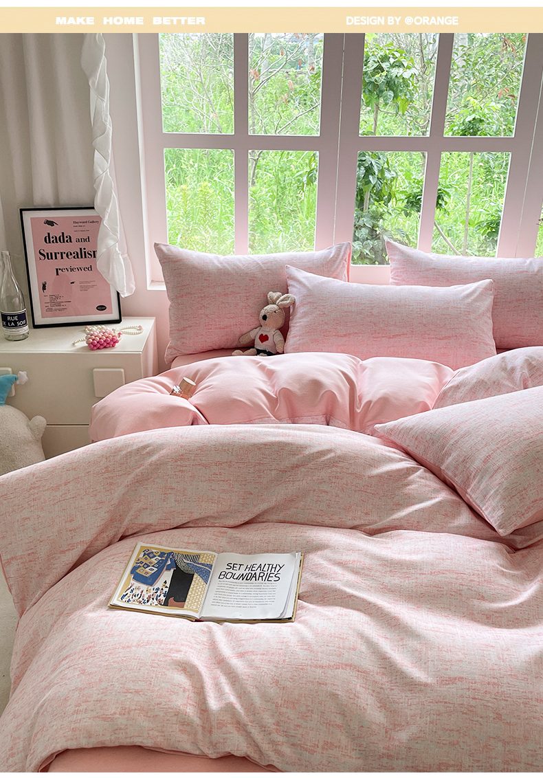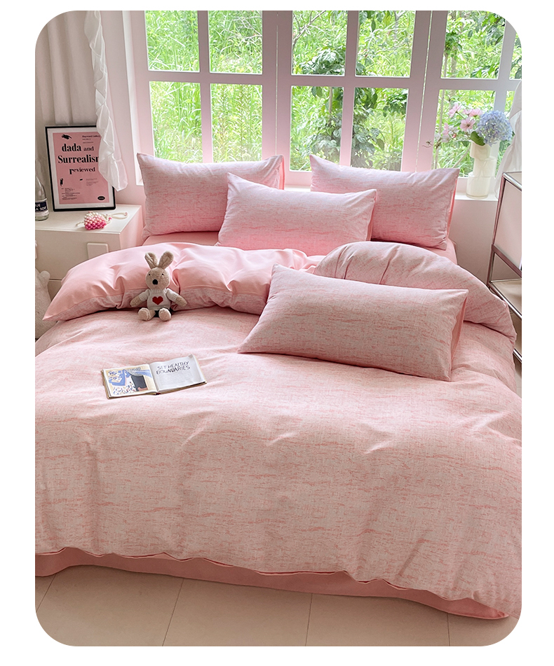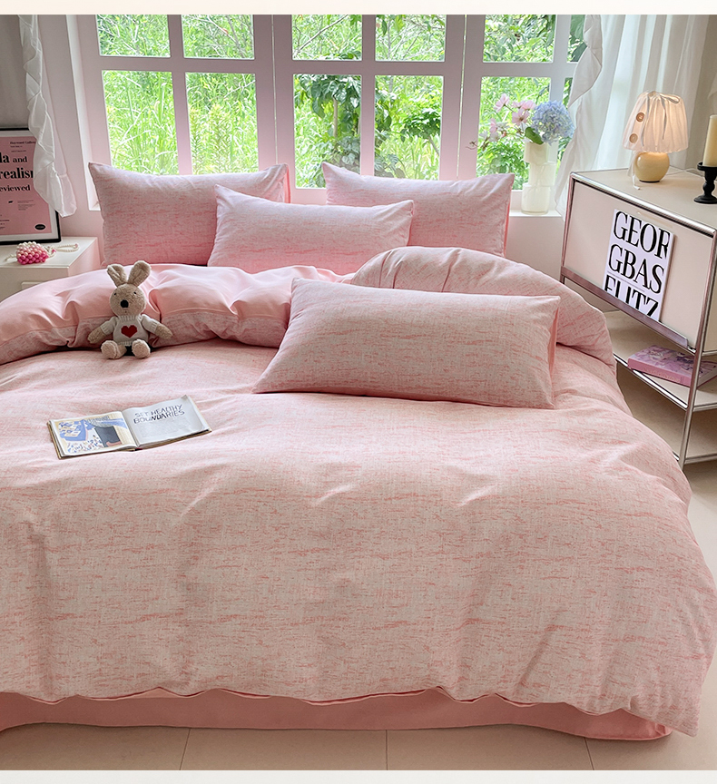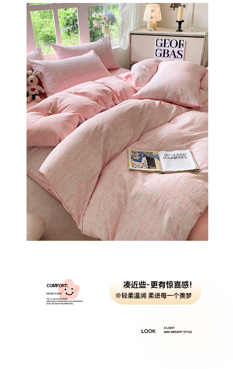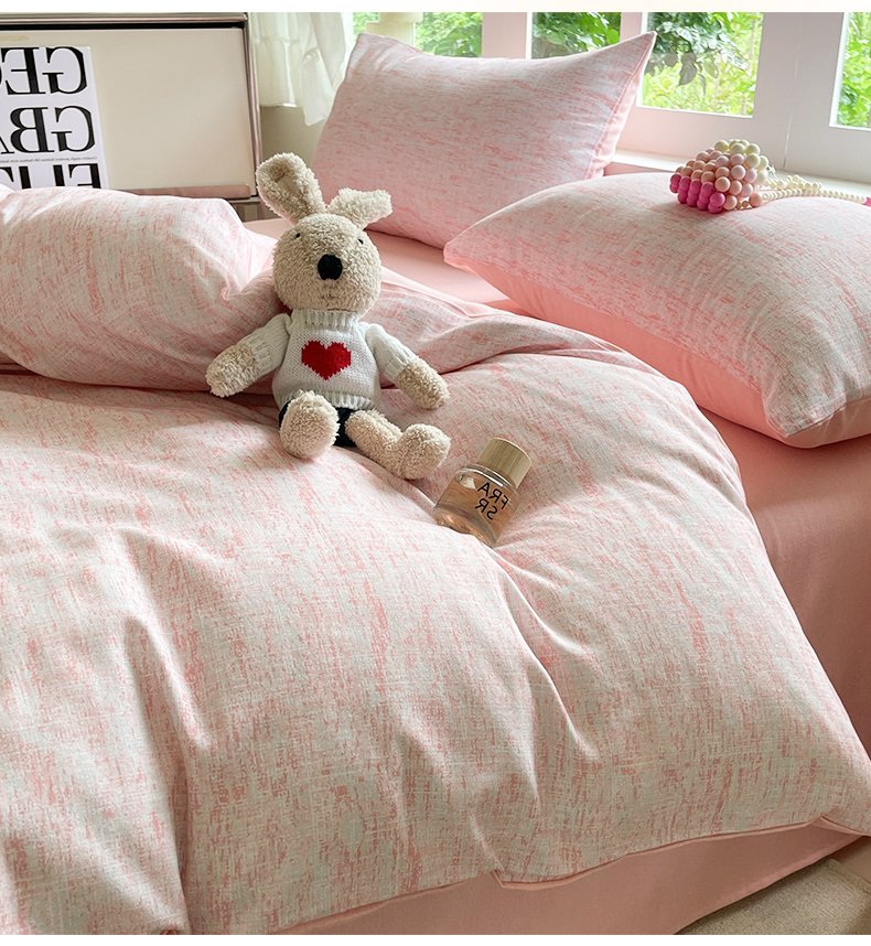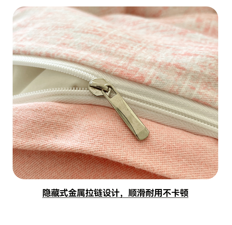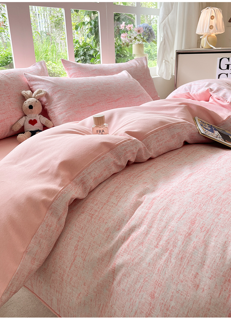 本制 2025秋冬新款全棉混纺磨毛印花四件套 霞光(粉)-杨妃粉