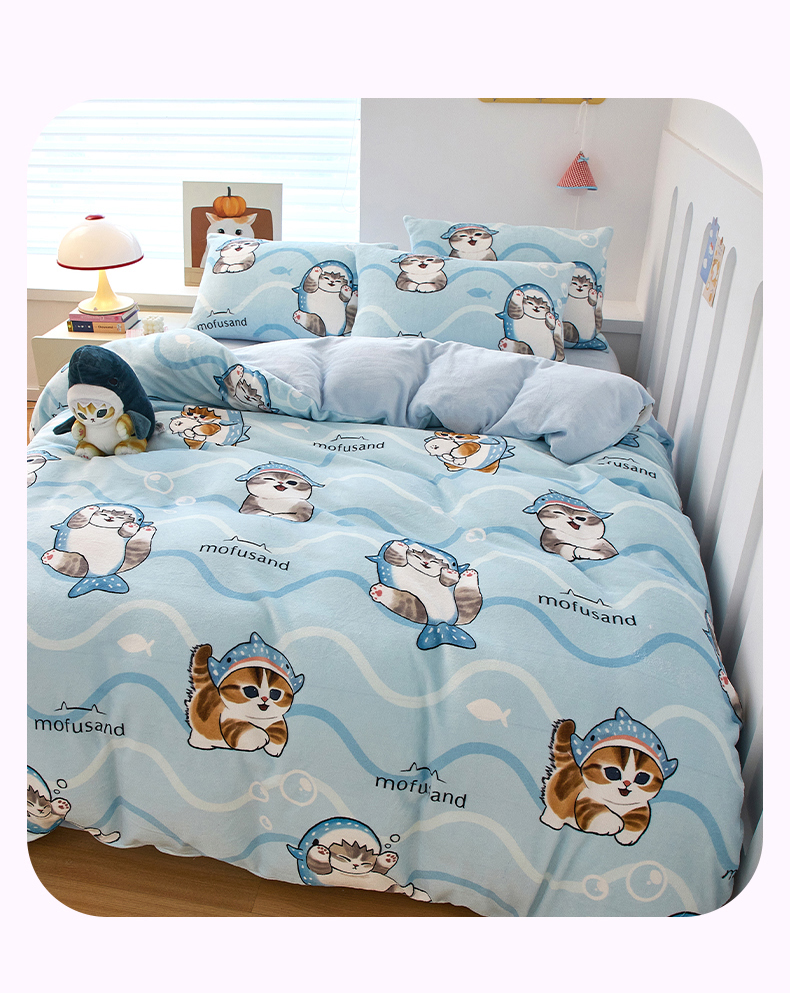(总)蘭菲家纺 2025新款高克重牛奶绒正版鲨鱼猫系列四件套