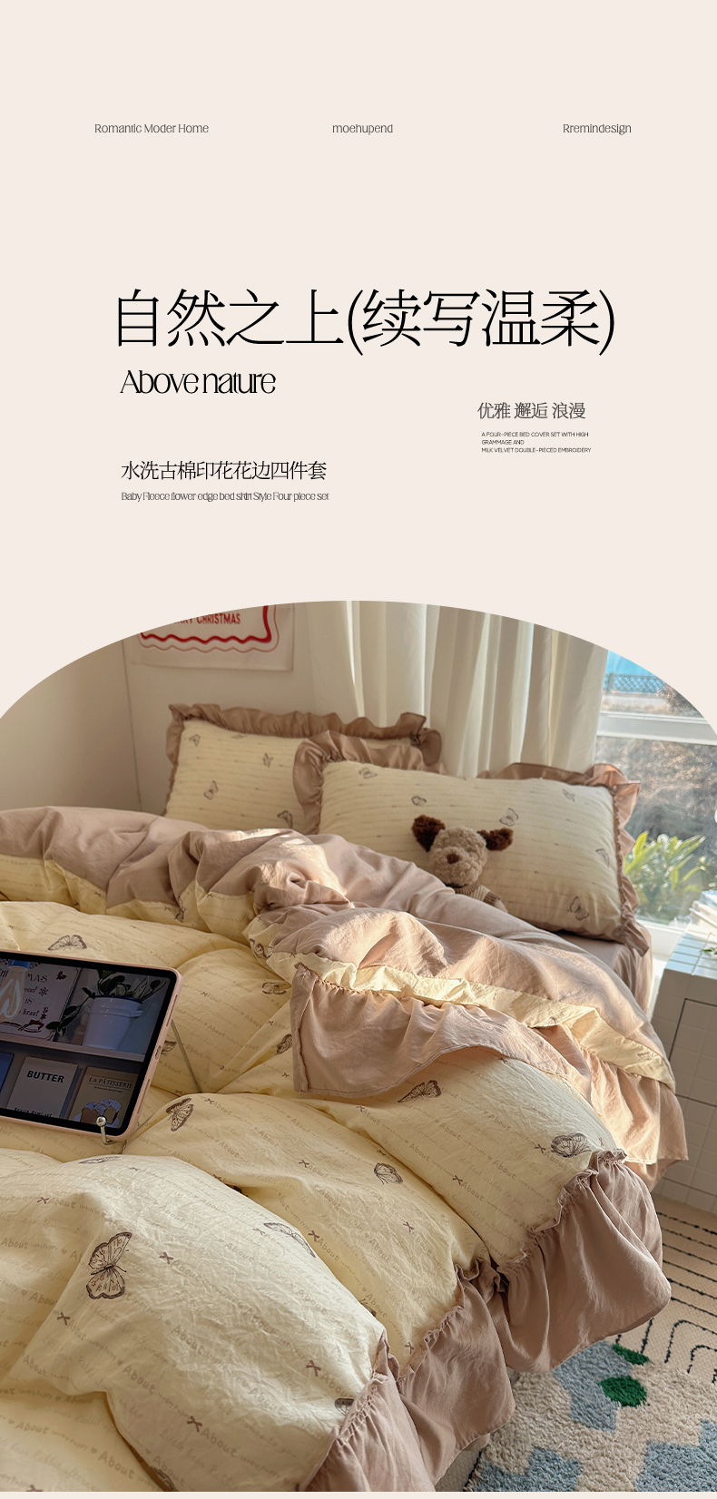 (总)韩都家居 2026春夏新款古法仿棉蕾丝花边四件套,粉糯花眠,花边南瓜,蓝调小顽家,蕾丝花漾,奶杏蔷薇,青提碎花,雾里蔷薇,芋泥碎花
