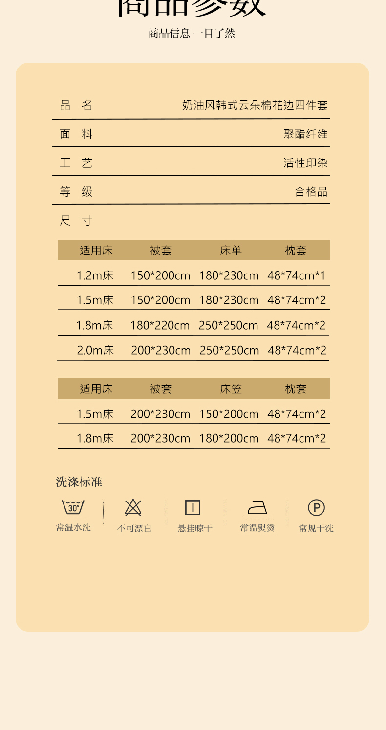 商品名称:(总)艺玲家纺 2026新款奶油风韩式云朵棉花边四件套