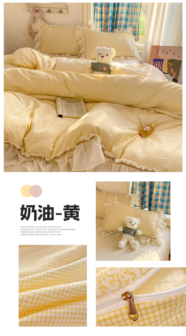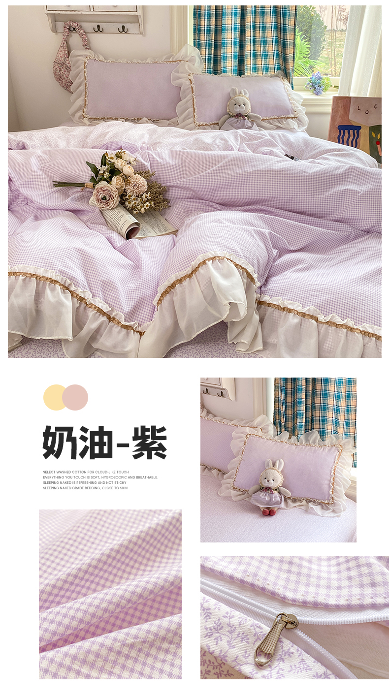 (总)艺玲家纺 2025新款韩版亲肤水洗棉刺绣花边床裙四件套,香香小姐-粉玉,香香小姐-米黄,香香小姐-浅绿,香香小姐-浅紫