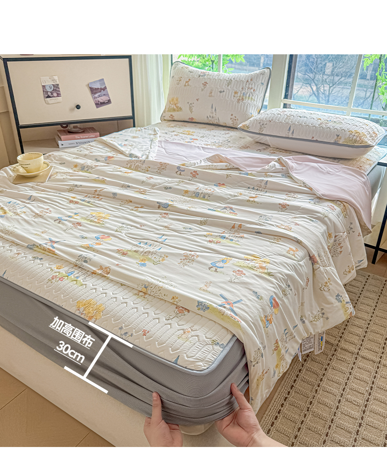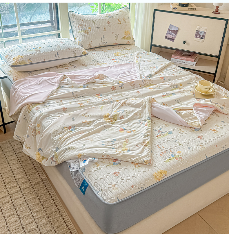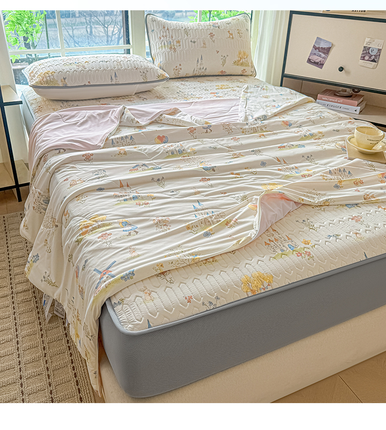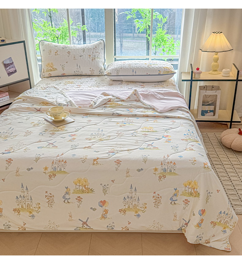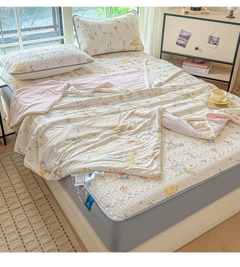 当前位置: 91家纺网 > 商品网购 > 床品套件 > 四件套 > 夏被四件套 > 莱登卡奴 2026新款新款A类凉感丝锦氨数码印花夏被四件套 浅梦田园
