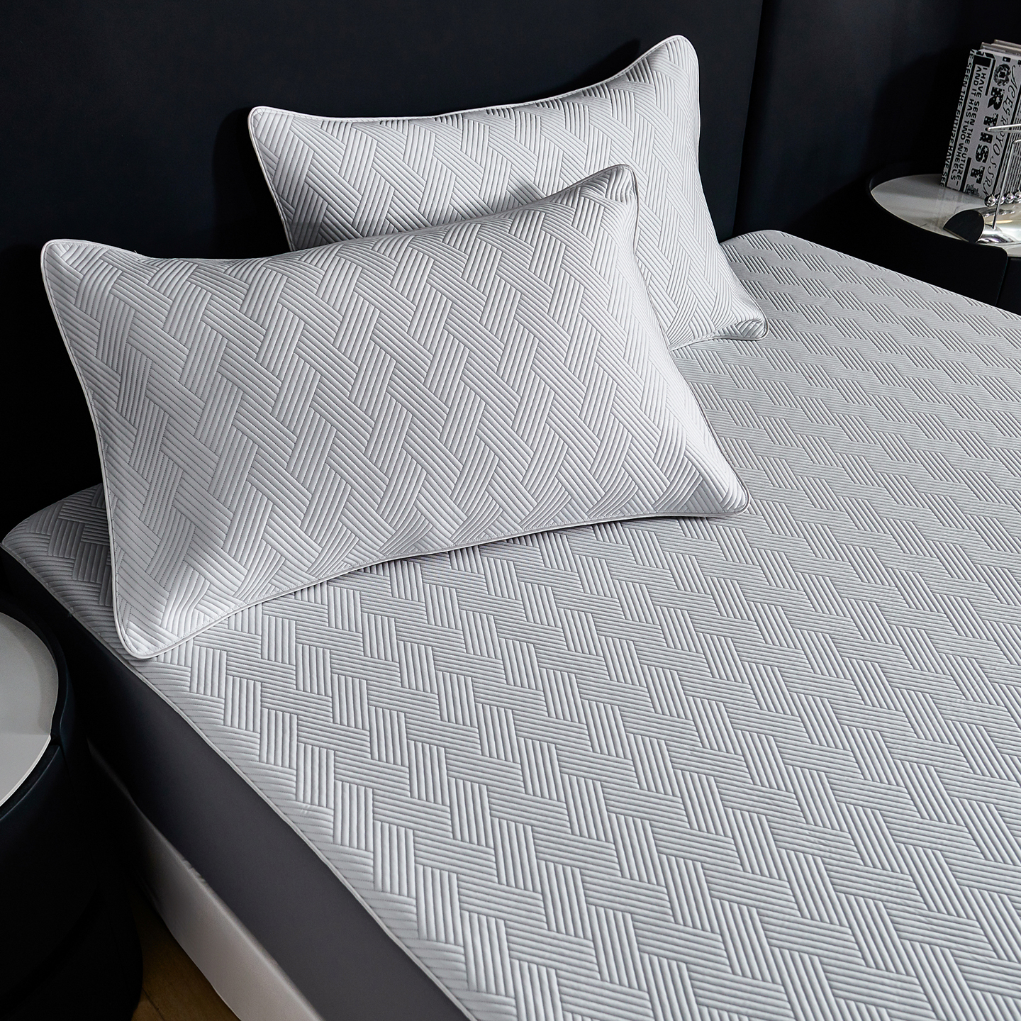 (总)CINNY馨宜 2026新款PE高分子乙纶凉感席三件套韩国雪花席床笠三件套 pe凉席冰丝席 豆豆席,蓝方格,菱形灰,菱形白,叶语灰