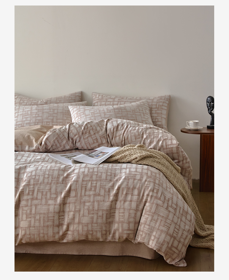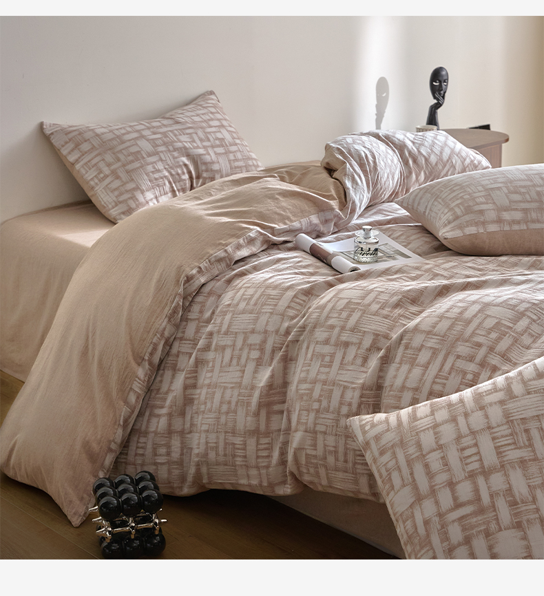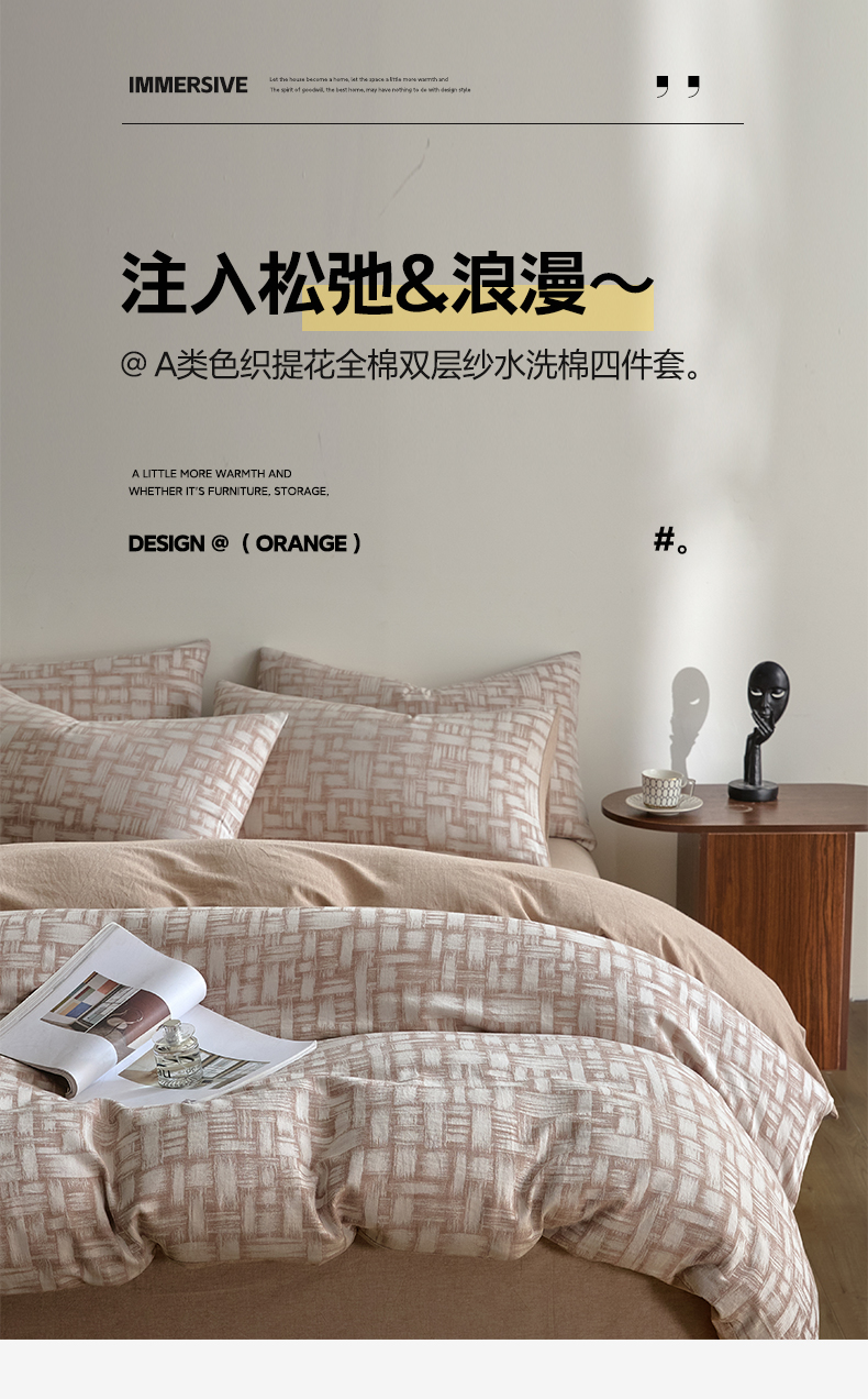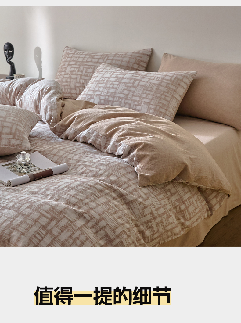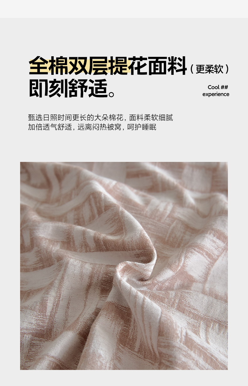 商品名称:如一 2026新款A类色织提花全棉双层纱水洗棉四件套 浮光咖