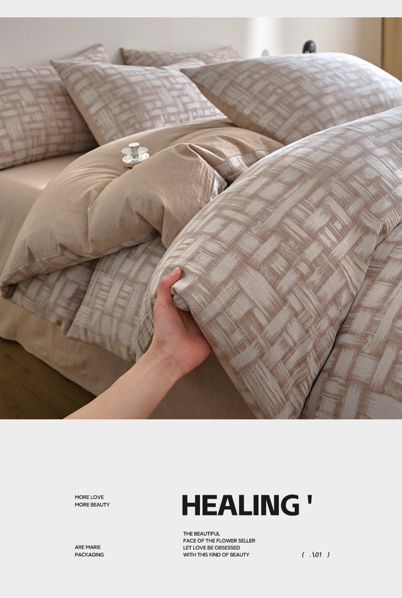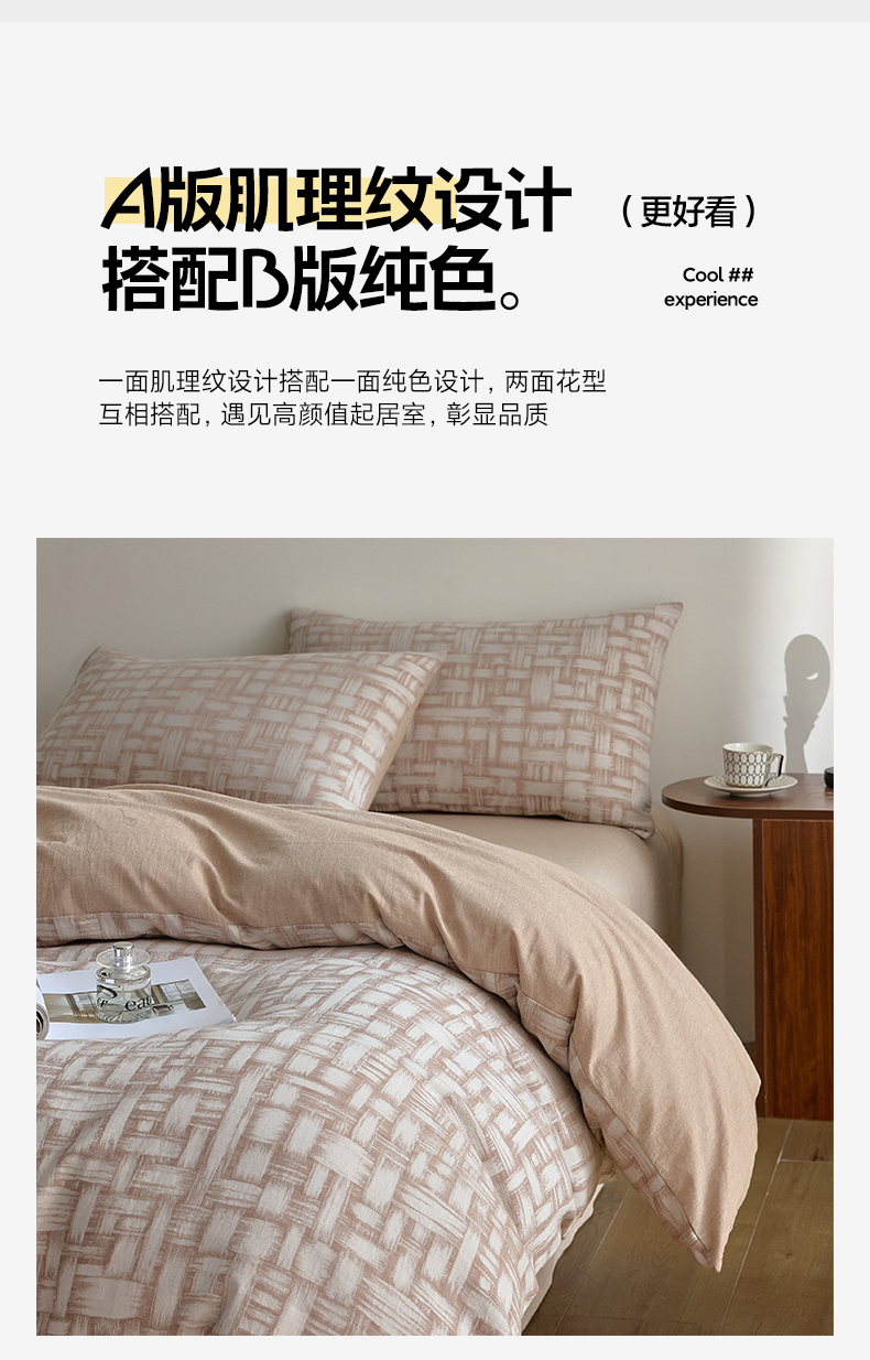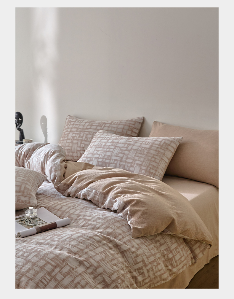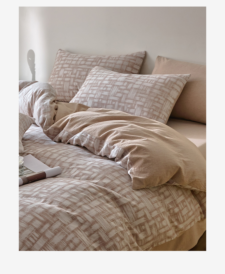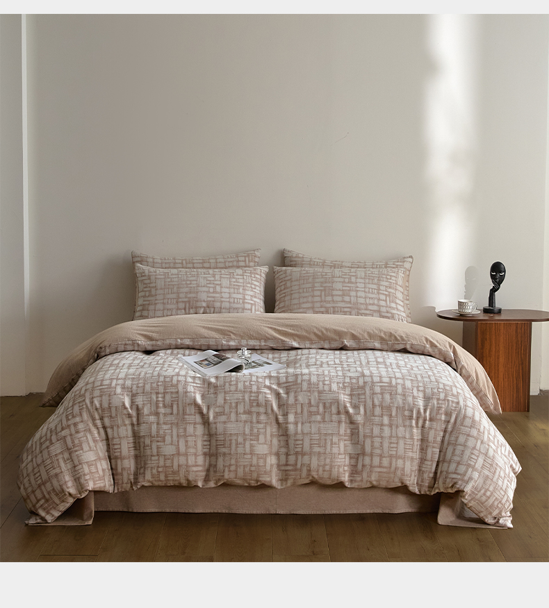 商品名称:如一 2026新款A类色织提花全棉双层纱水洗棉四件套 浮光咖