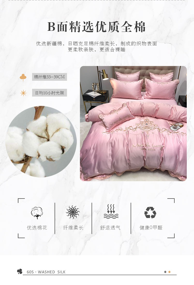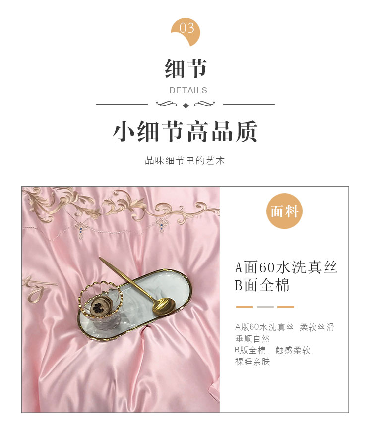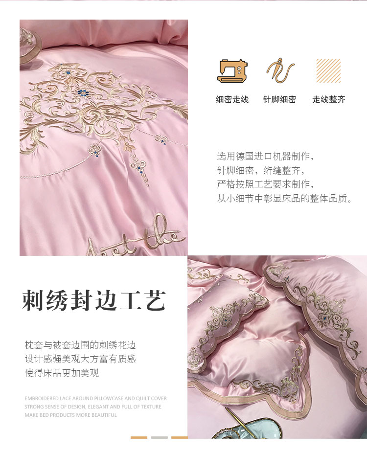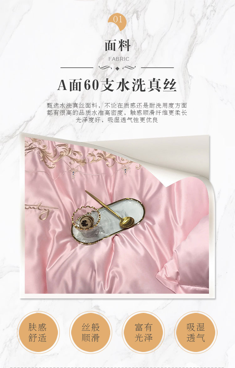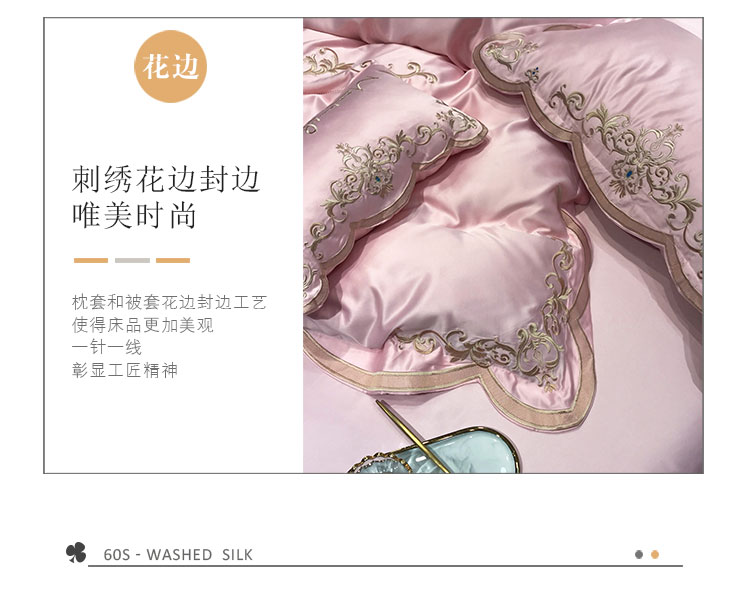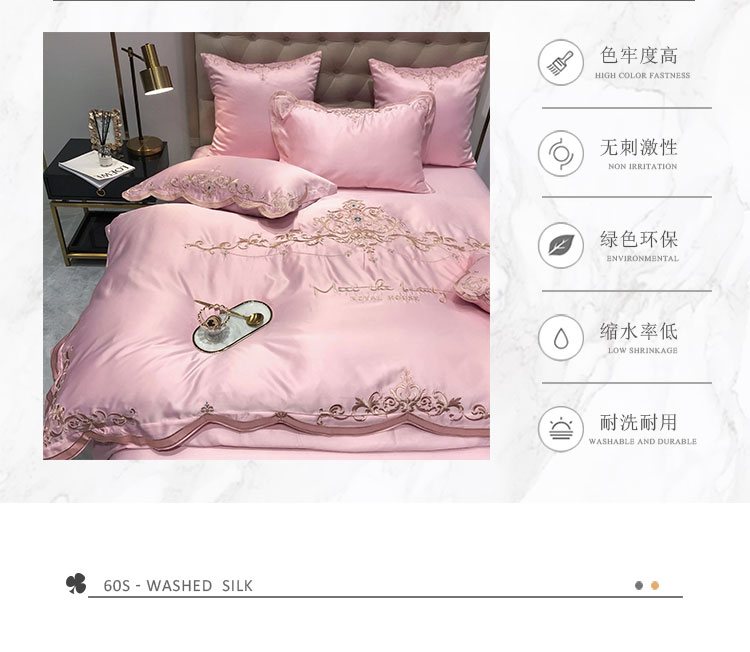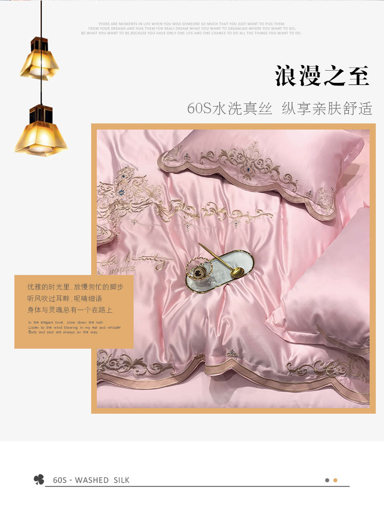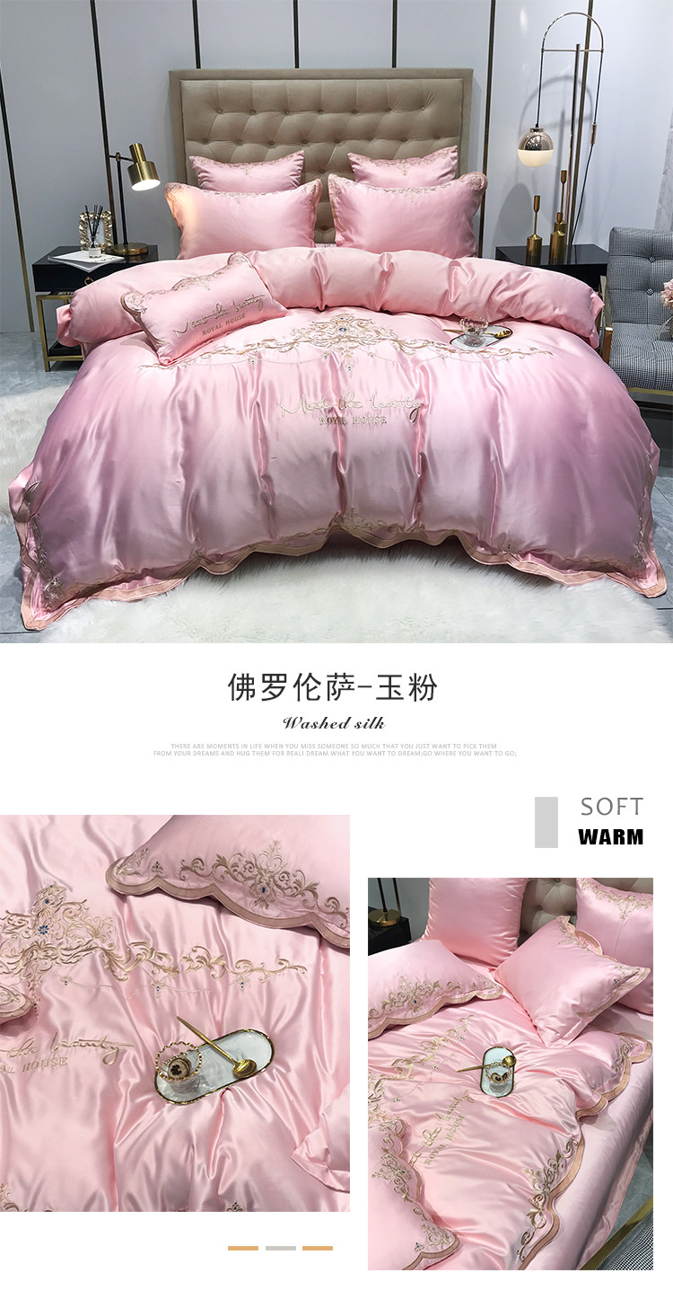 商品名称:安妮家居 2020新款60支水洗真丝绣花四件套 佛罗伦萨玉粉