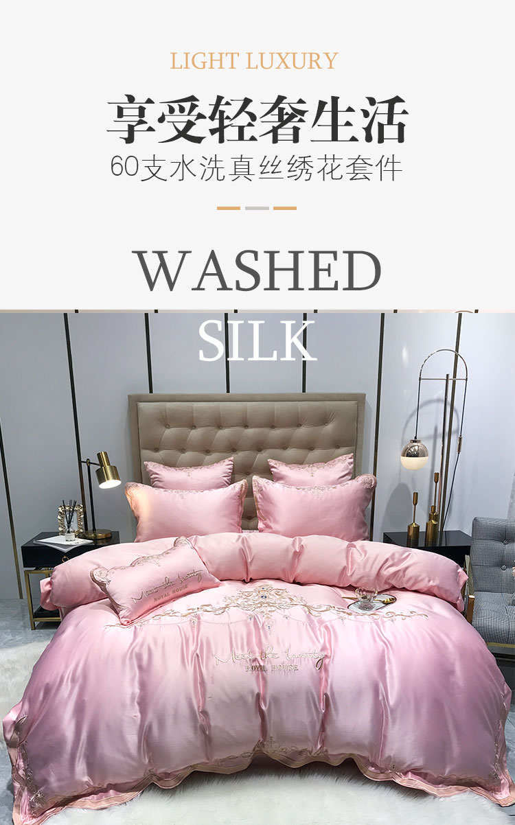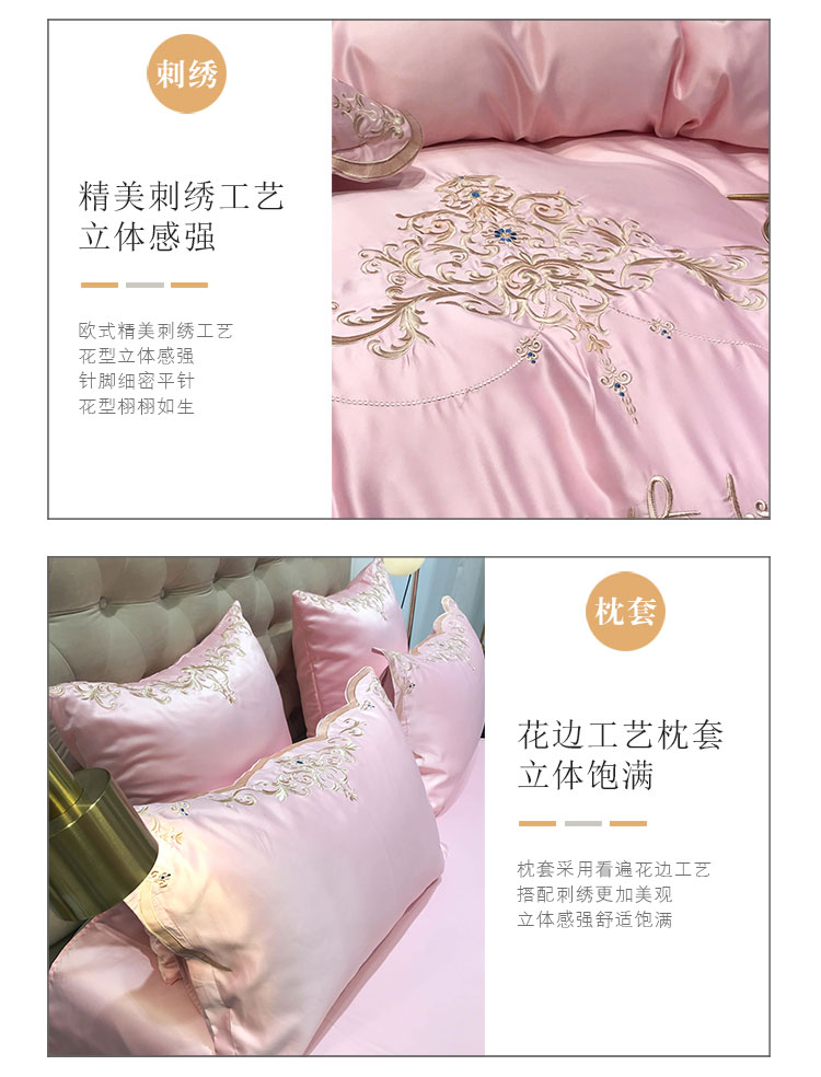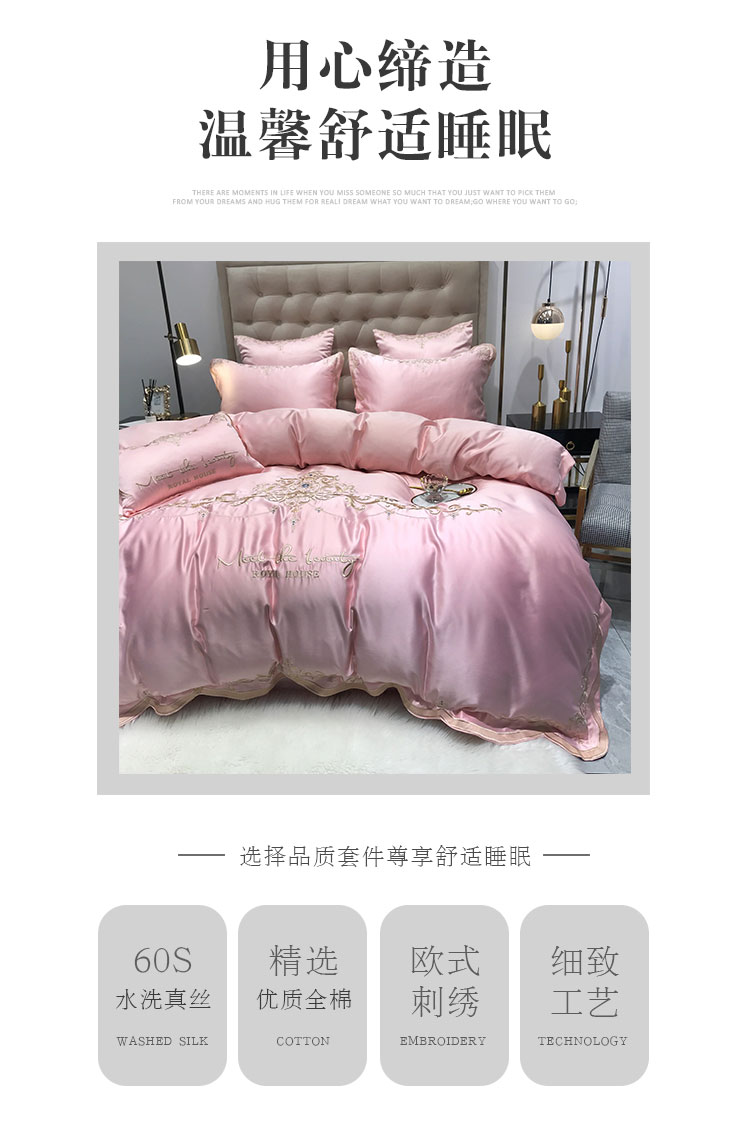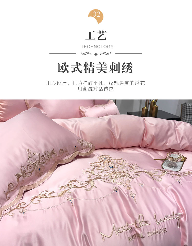 安妮家居 2020新款60支水洗真丝绣花四件套 佛罗伦萨玉粉