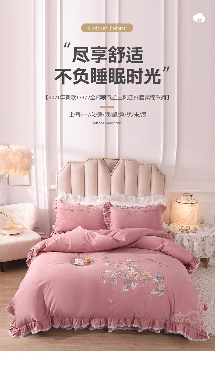 (总)迪欧芙2023新纯棉全棉喷气13372公主风四件套妮可,妮可-奶油白,妮可-少女粉,妮可-天空蓝