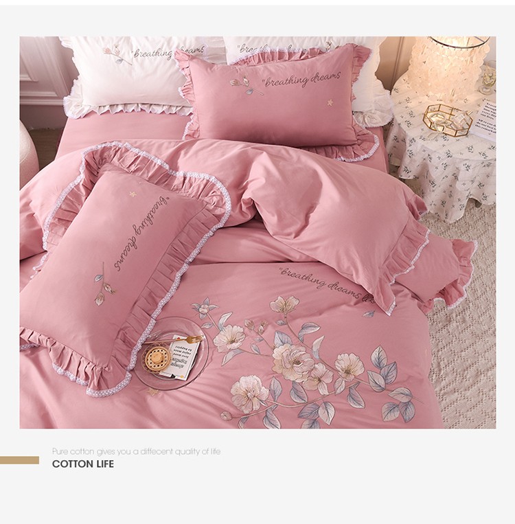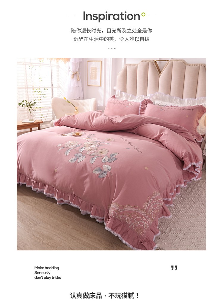 迪欧芙 2024春季纯棉13372公主风四件套爱的结语系列 爱的结语-粉,爱的结语-粉