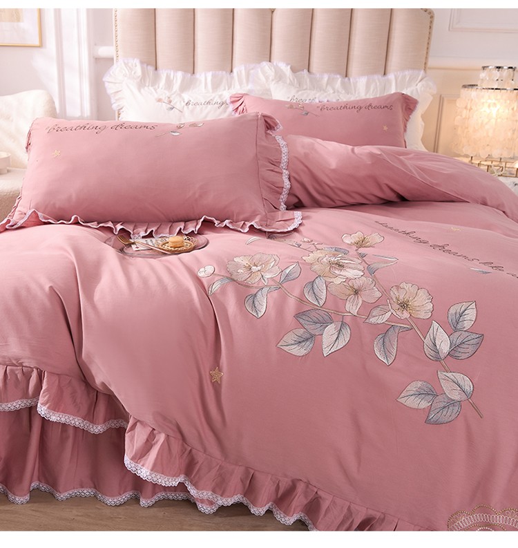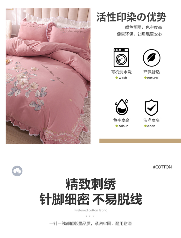 (总)迪欧芙2023新款纯棉全棉水洗棉刺绣工艺款四件套艾莉丝,艾莉丝-粉,艾莉丝-奶油白,艾莉丝-天空蓝