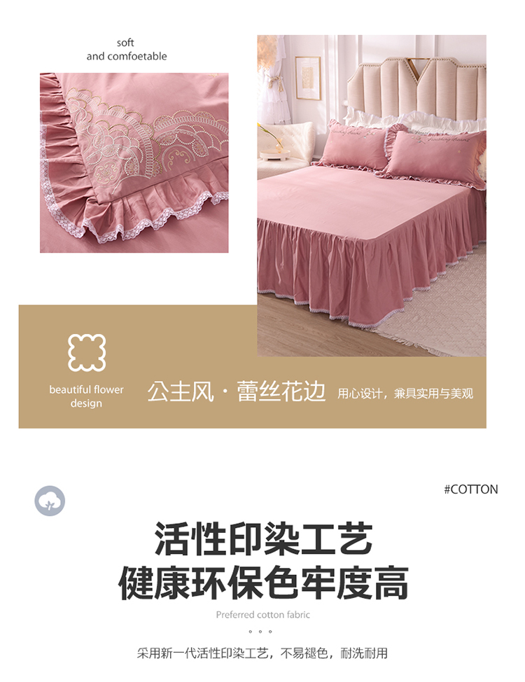 商品名称:迪欧芙2021纯棉喷气13372公主风素锦系列四件套豆沙色