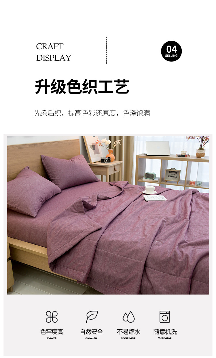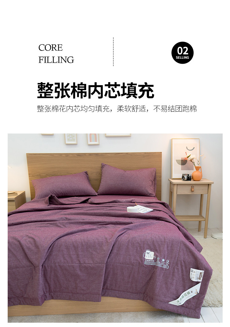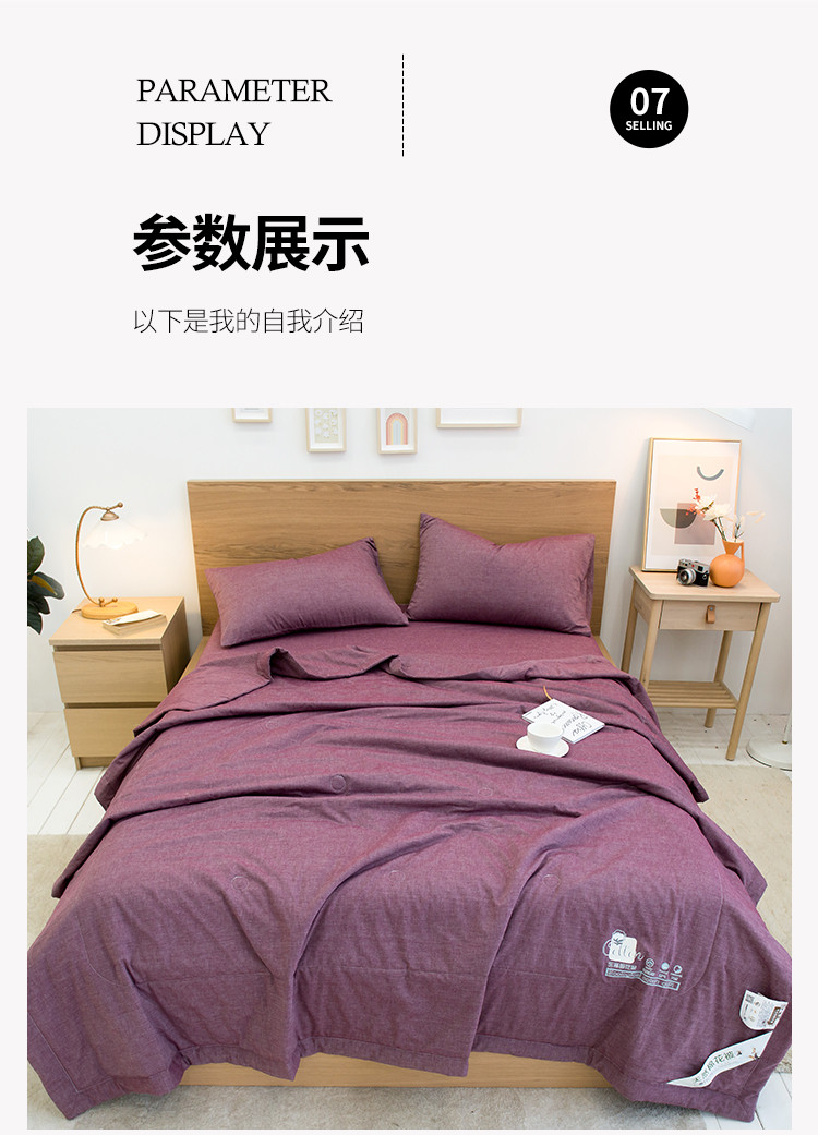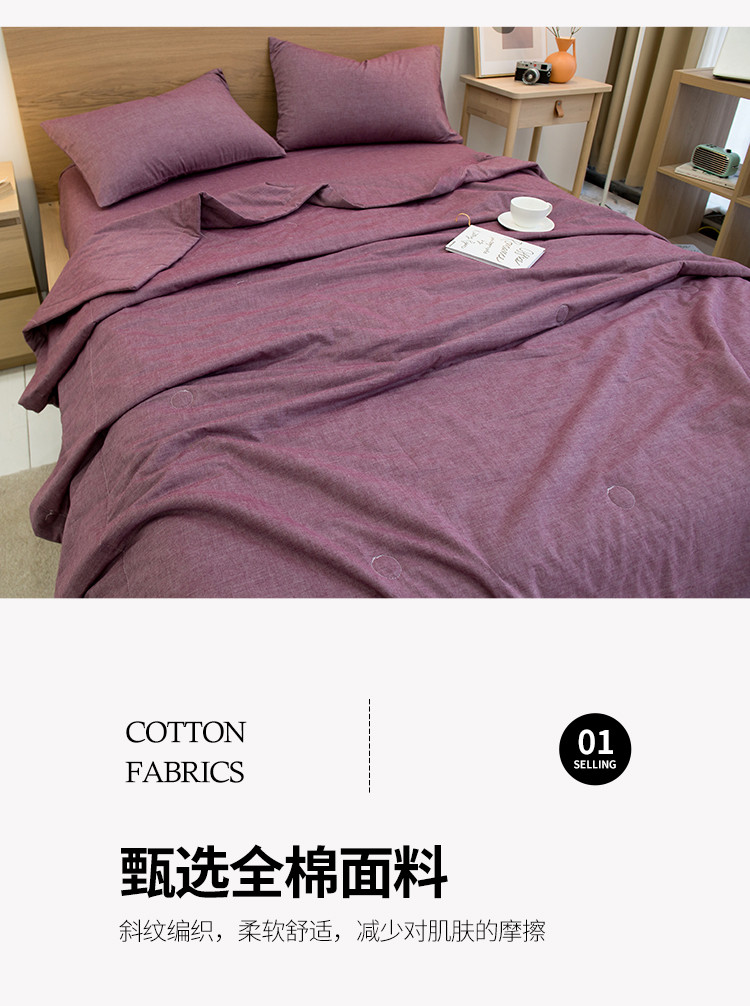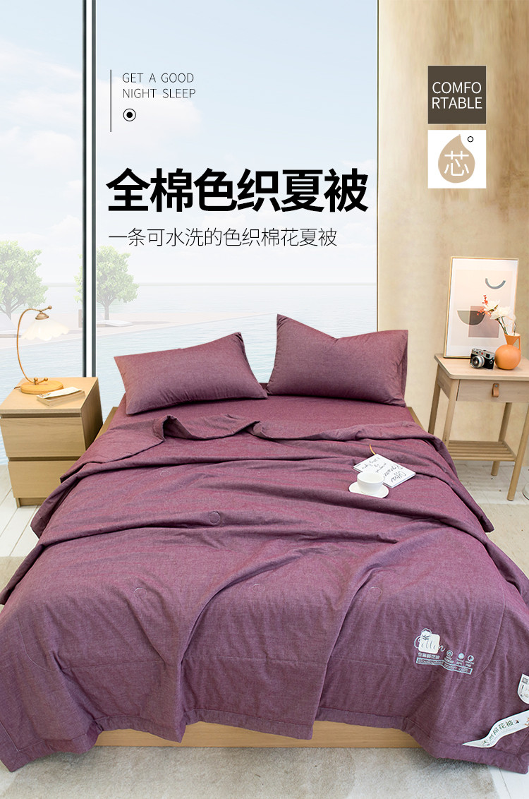 商品名称:全季 2021新款无印款全棉纯色色织棉花夏被 紫色