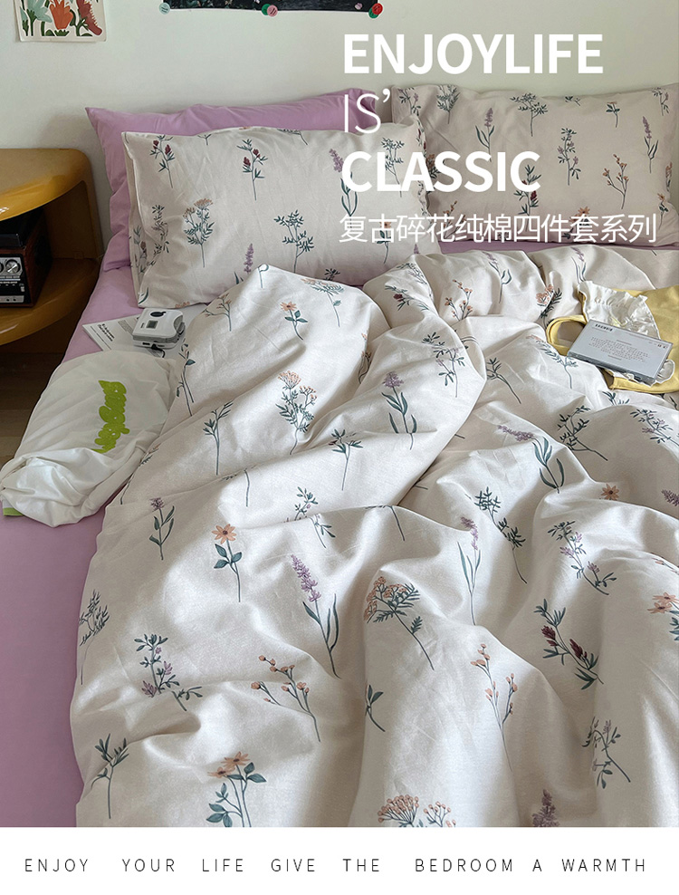 当前位置: 91家纺网 > 商品网购 > 床品套件 > 四件套 > 全棉普通四件套 > 艾沁 2022新款全棉复古碎花四件套紫薇