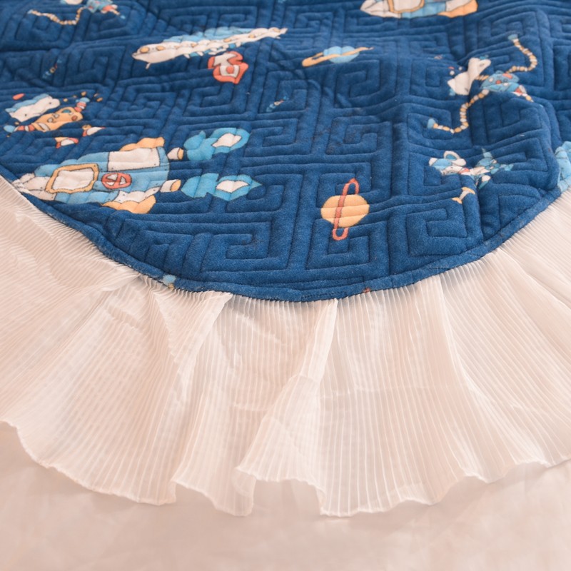商品名称:2025新款牛奶绒印花夹棉花边 单品床盖 太空机器人北卡蓝