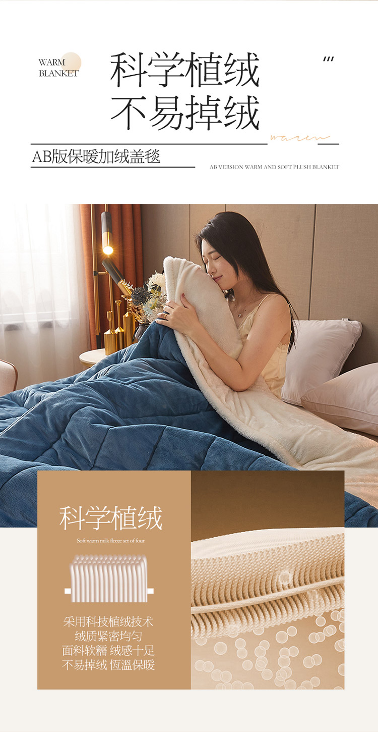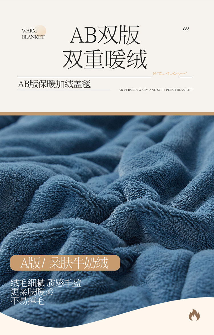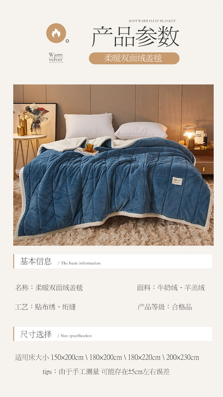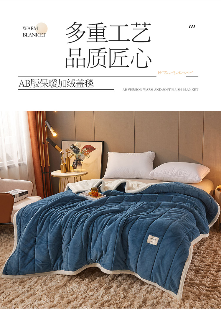商品名称:湘之帛日产一万套2024直播电商爆款双面绒复合毛毯毯子牛奶绒 普鲁士蓝