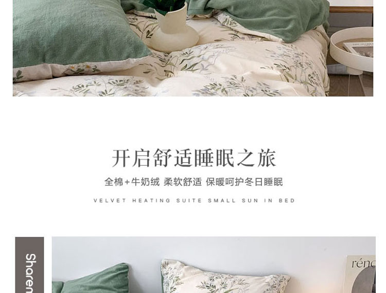 当前位置: 91家纺网 > 商品网购 > 床品套件 > 四件套 > 牛奶绒四件套 > 梦家居 2022新款秋冬新品全棉加牛奶绒四件套 仙草绒
