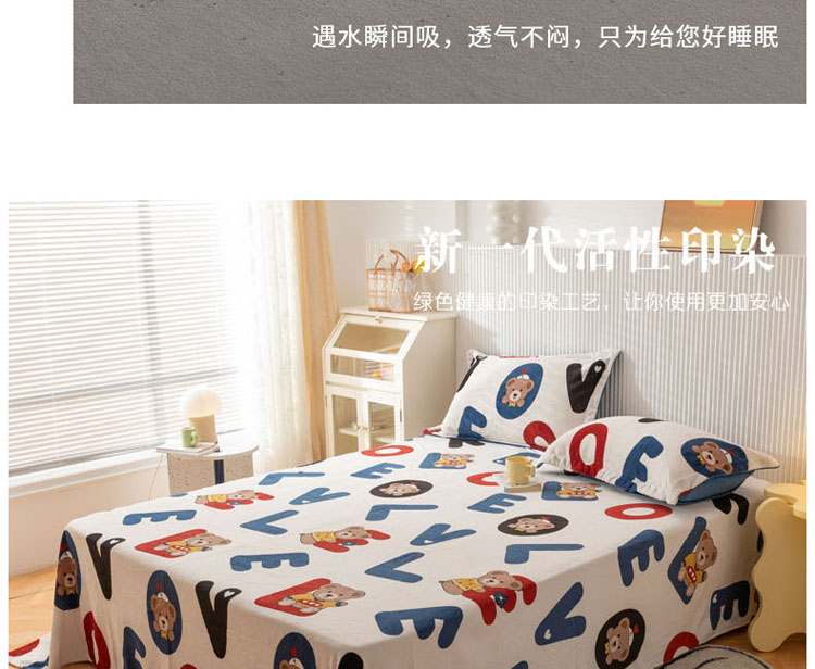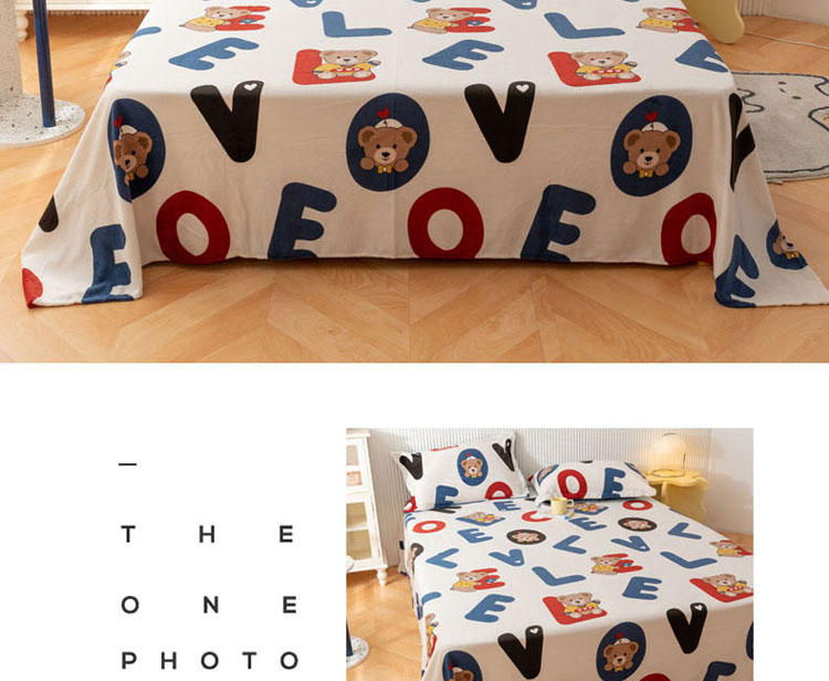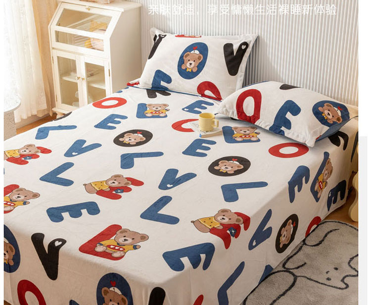 梦家居 2022新款秋冬新款牛奶绒单床单 字母小熊