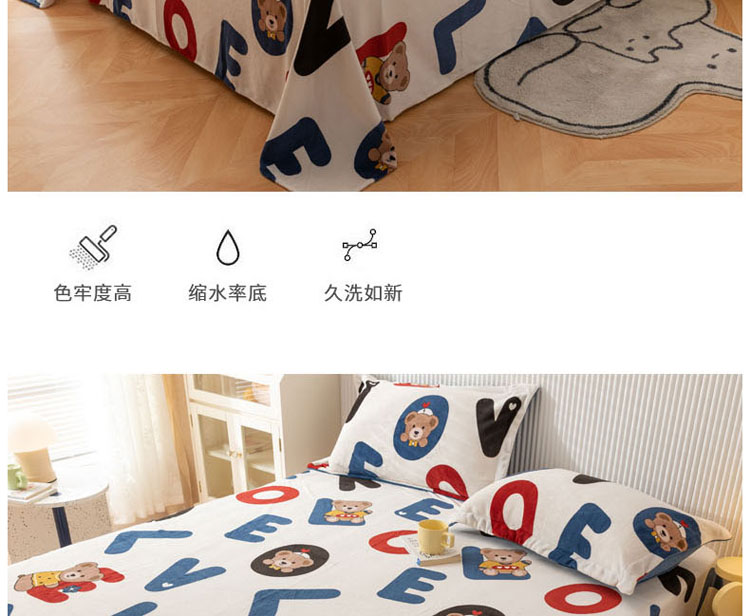 商品名称:梦家居 2022新款秋冬新款牛奶绒单床单 字母小熊
