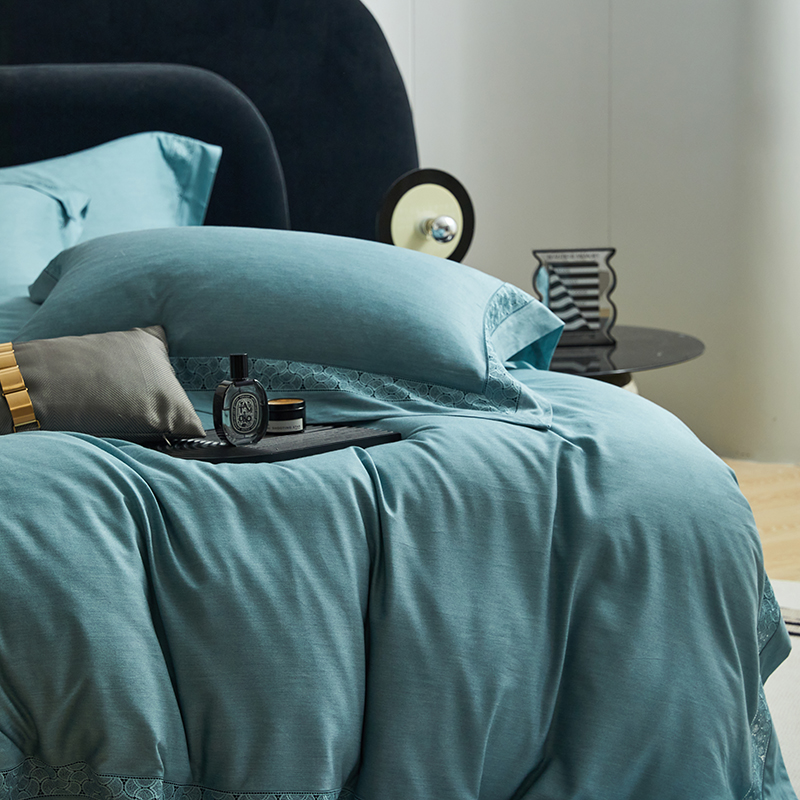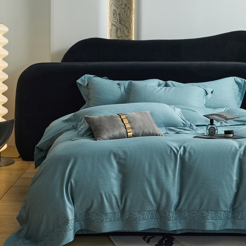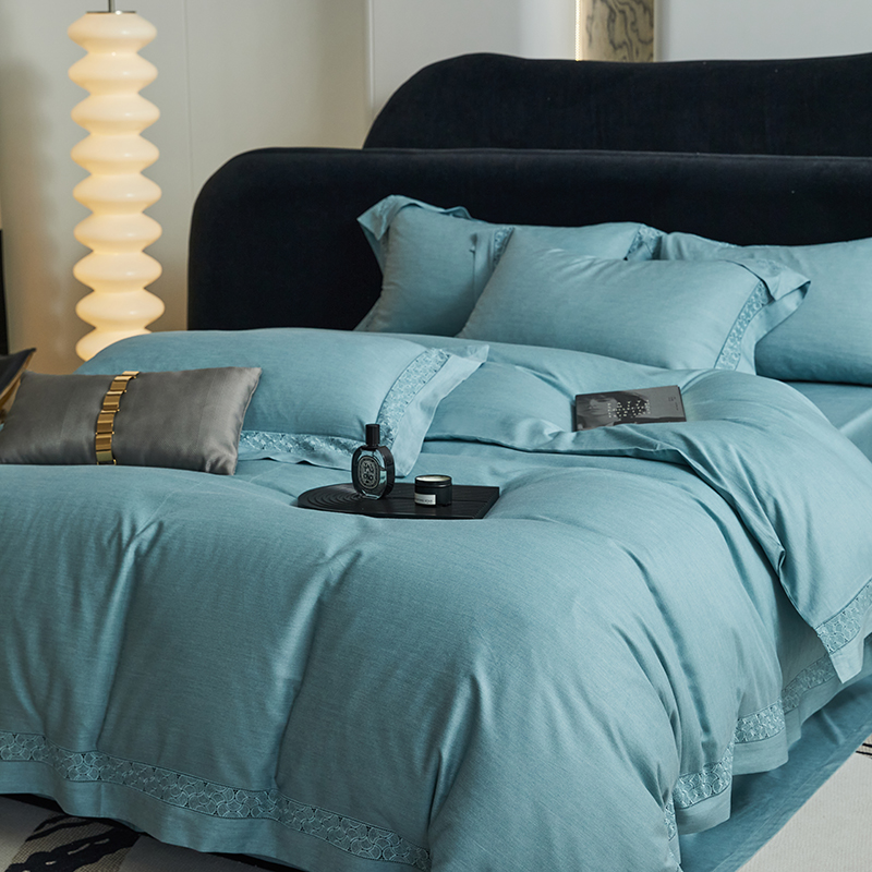 总榻尚家居 2023新款格瑞斯系列100贡缎长绒棉四件套工艺款四件套,格瑞斯紫,格瑞斯白,格瑞斯灰,格瑞斯蓝