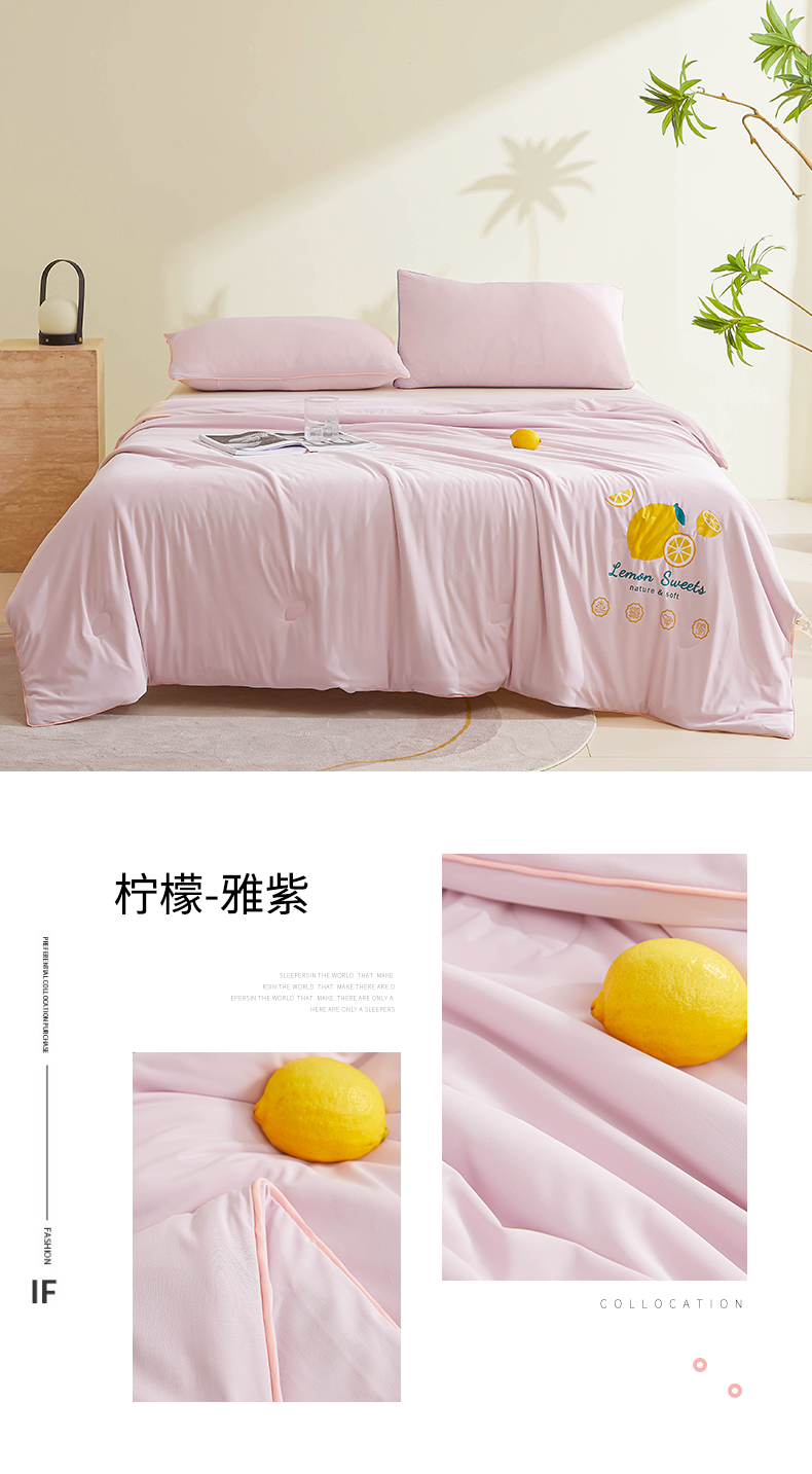商品名称:恒畅 2024新款A类凉感丝纯色双拼柠檬夏被 柠檬-雅紫