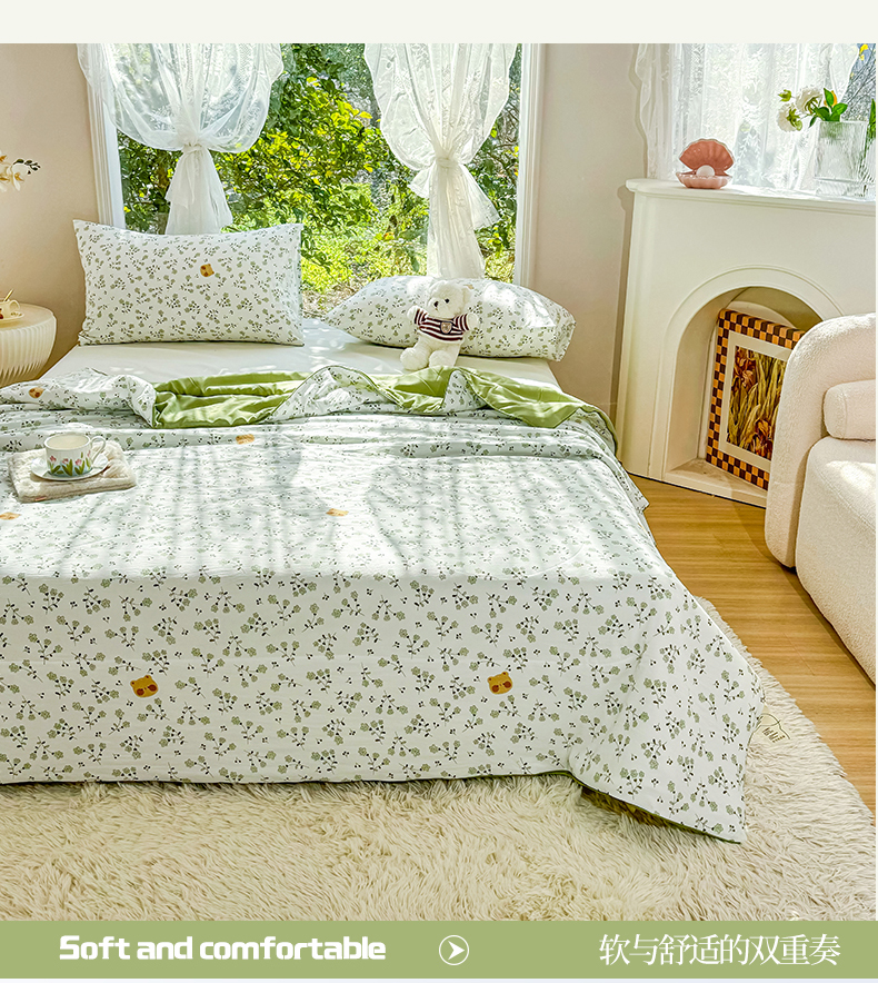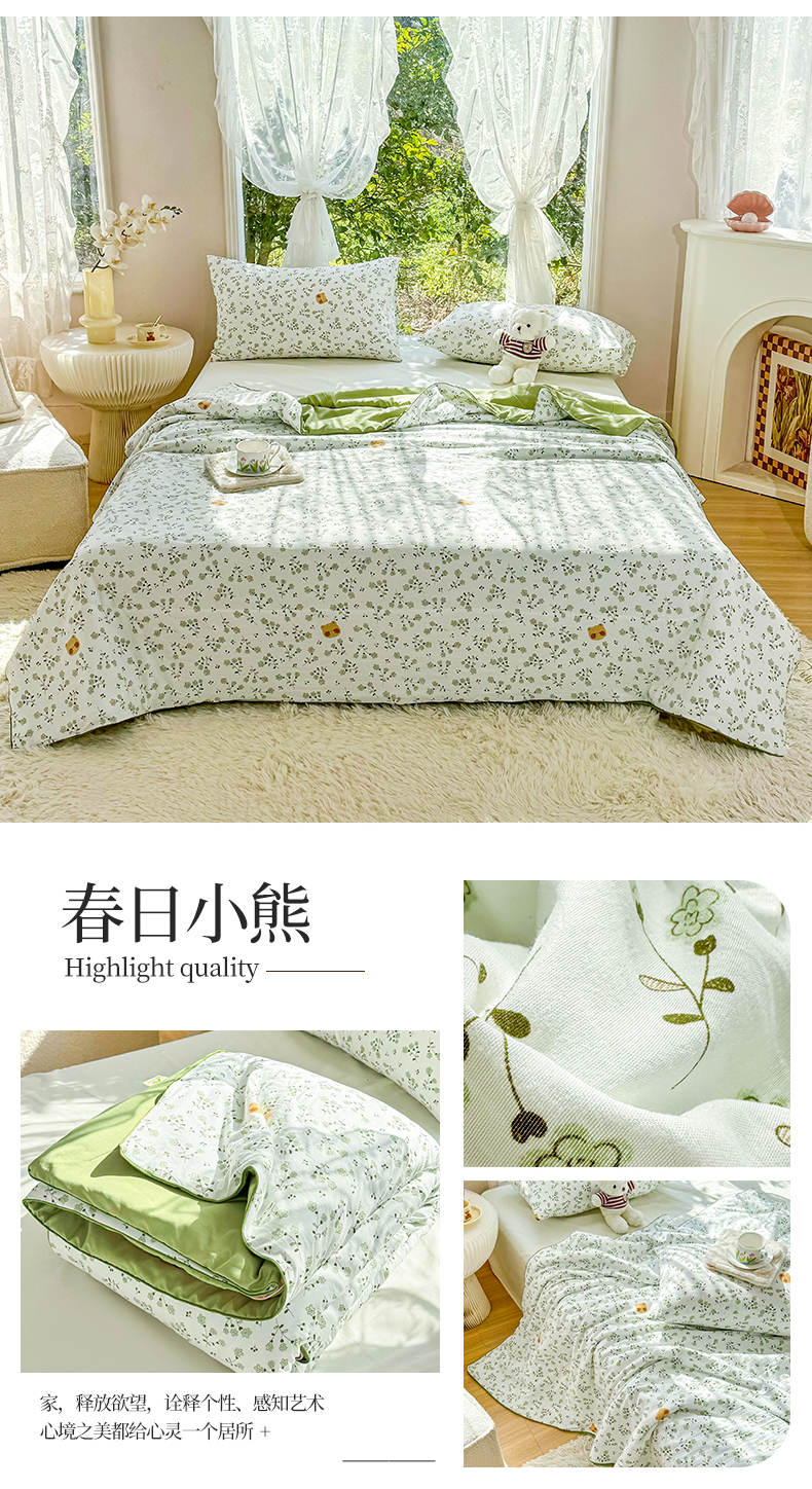 梦恬佳-2024新款A类水洗双层纱夏凉被 春日小熊