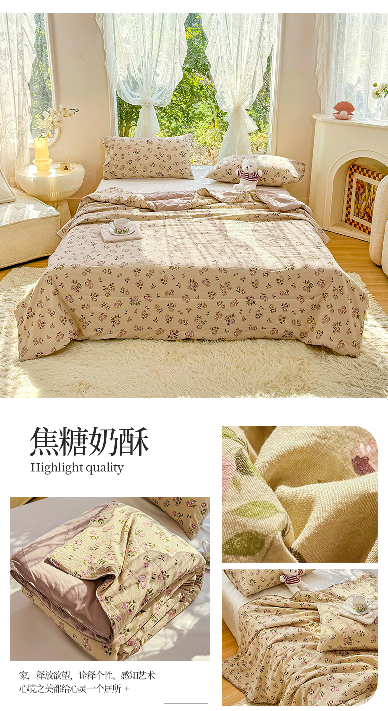 商品名称:梦恬佳-2024新款A类水洗双层纱夏凉被 焦糖奶酥