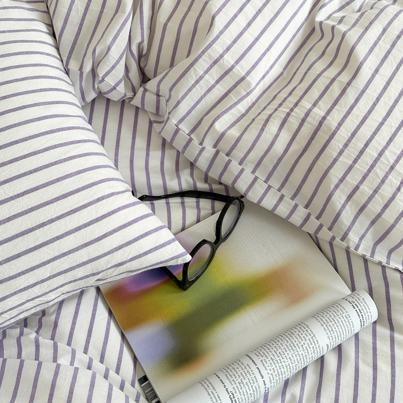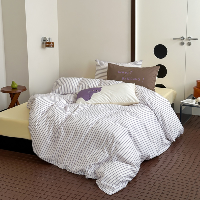 当前位置: 91家纺网 > 商品网购 > 床品套件 > 四件套 > 全棉普通四件套 > 艾沁家纺 2024新款32支全棉色织水洗棉四件套-紫猫+肥梨 紫条纹