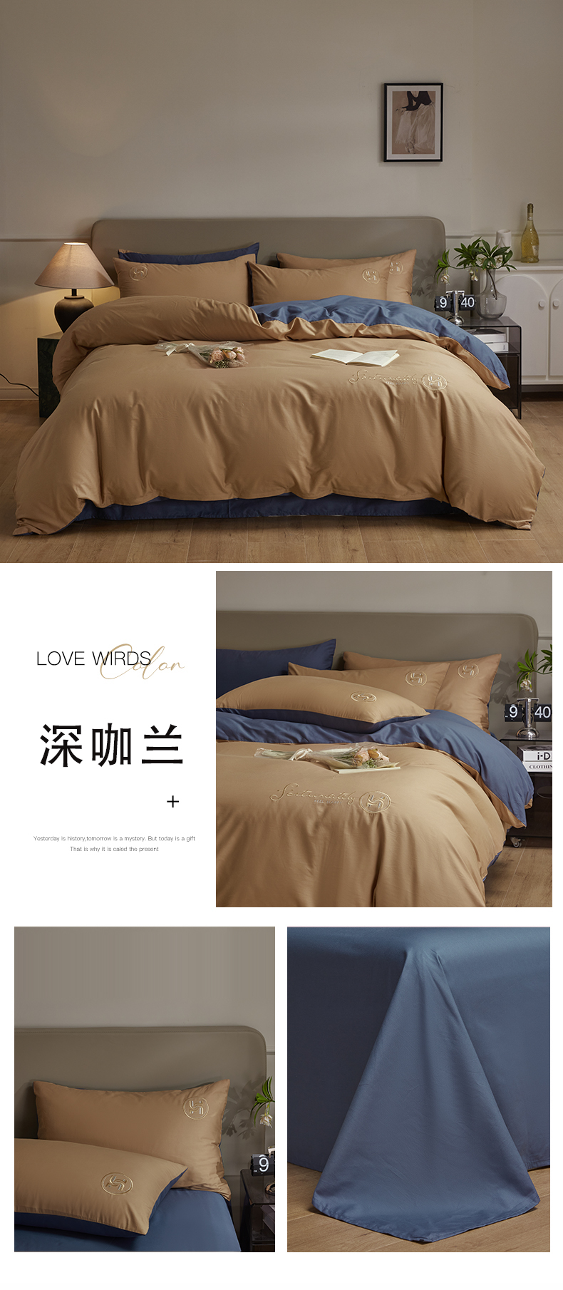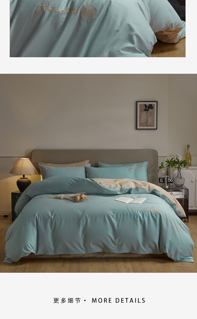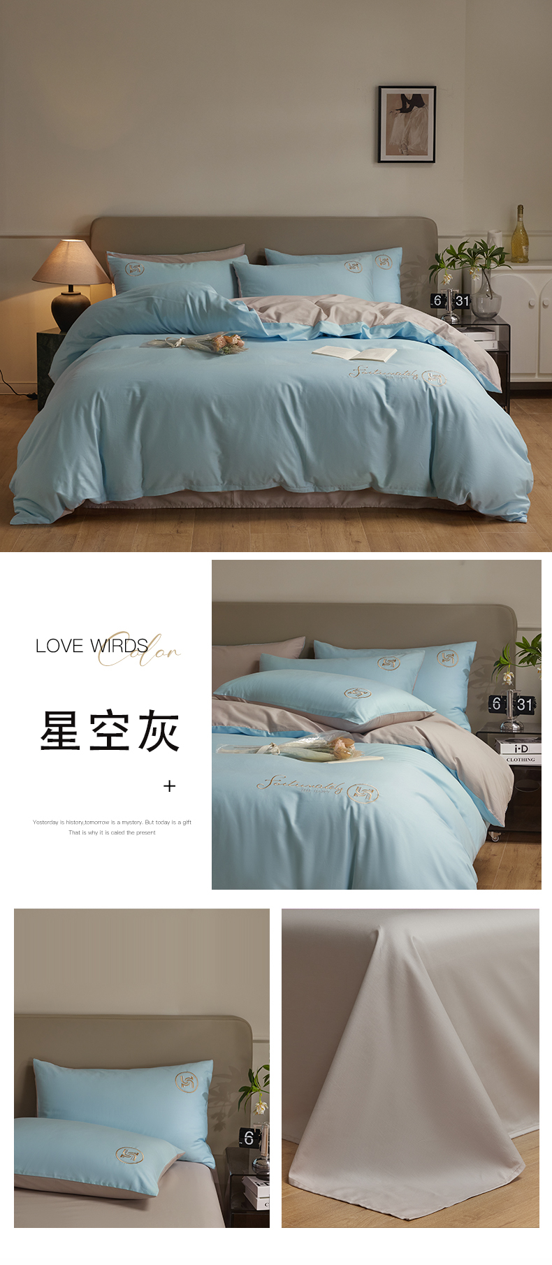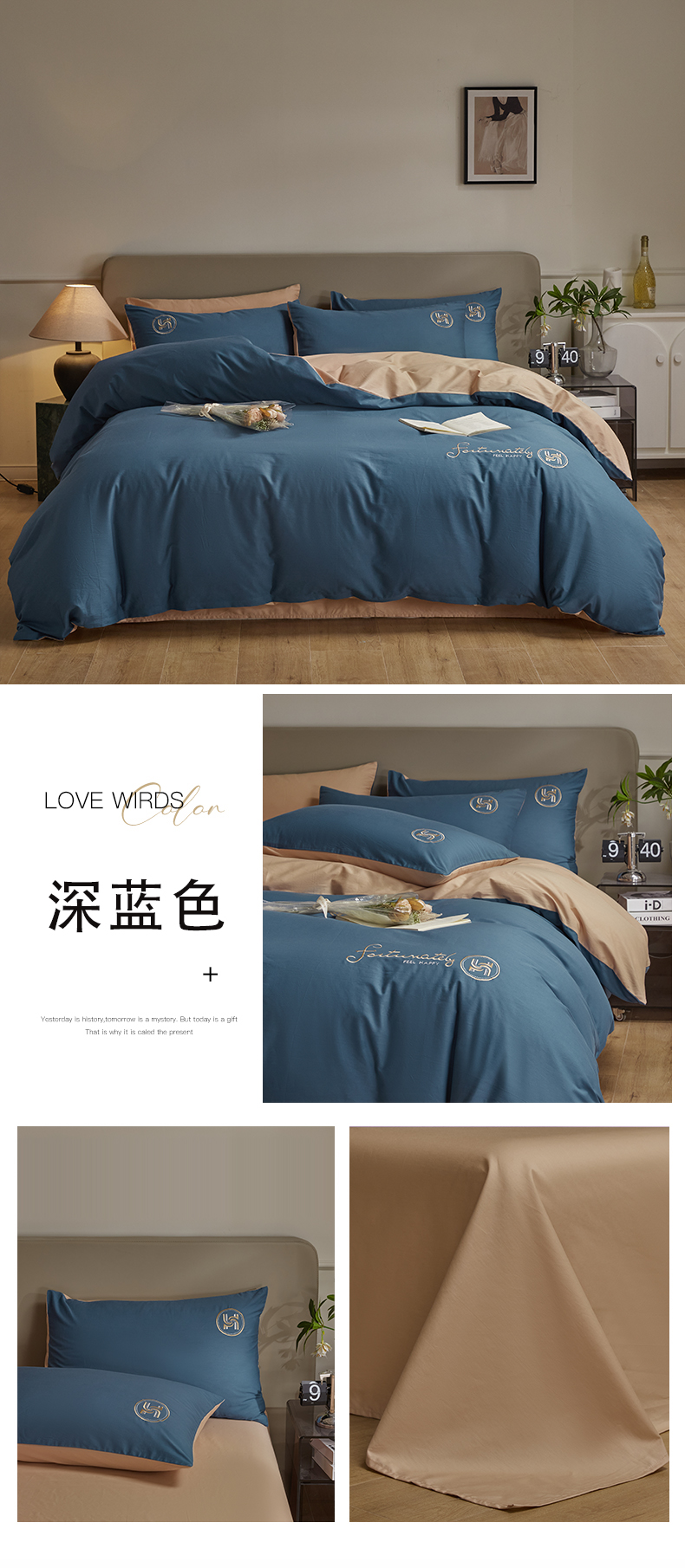 2024新款纯色双拼绣花纯棉四件套 繁星蓝