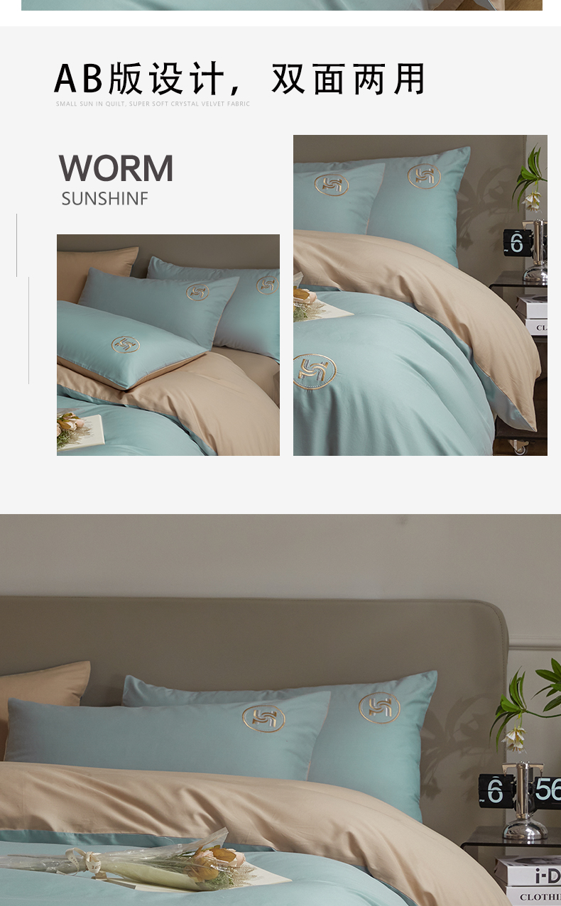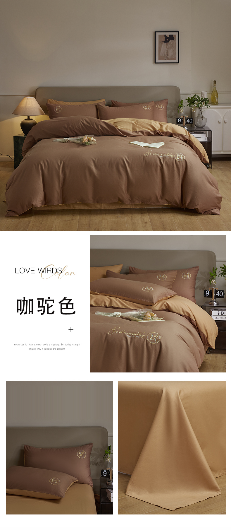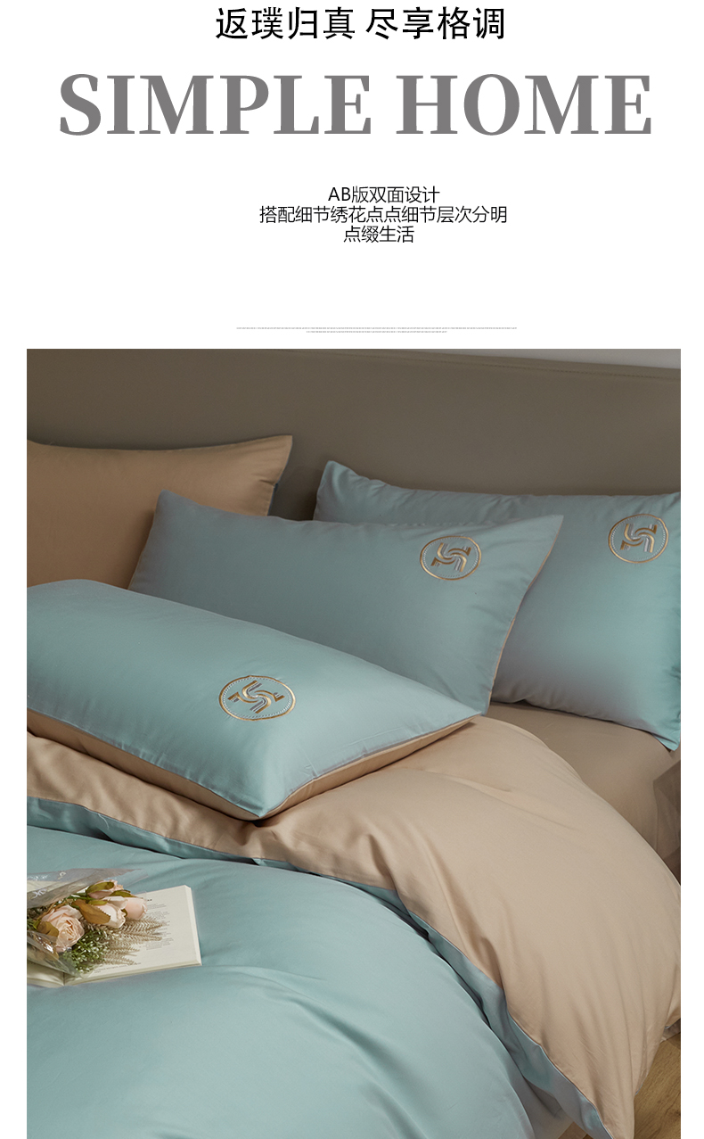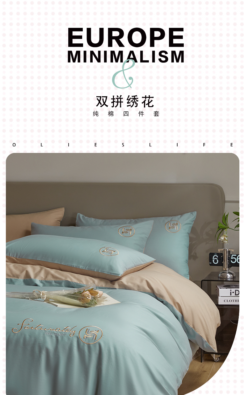 2024新款纯色双拼绣花纯棉四件套 繁星蓝