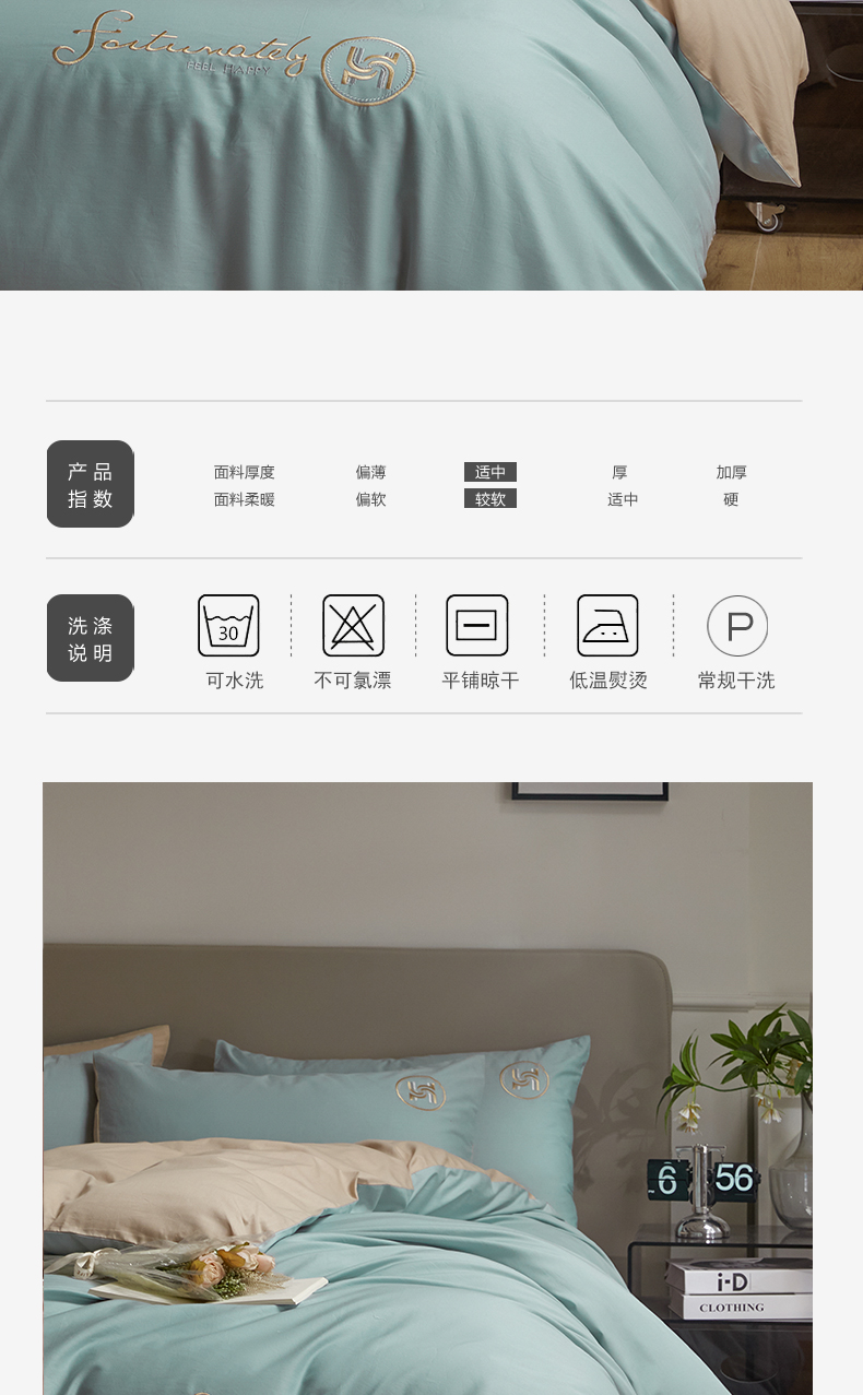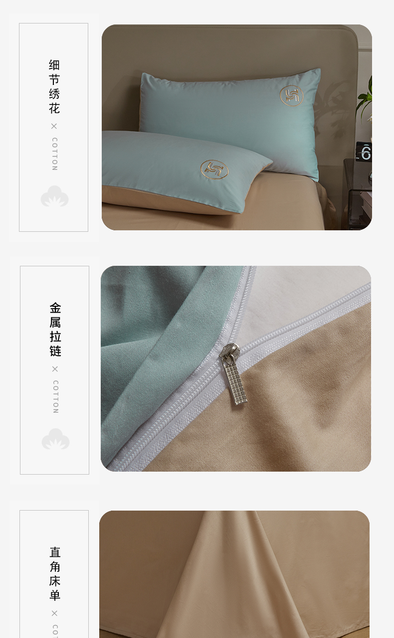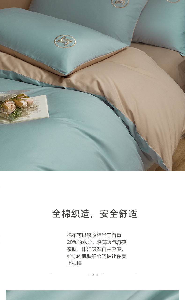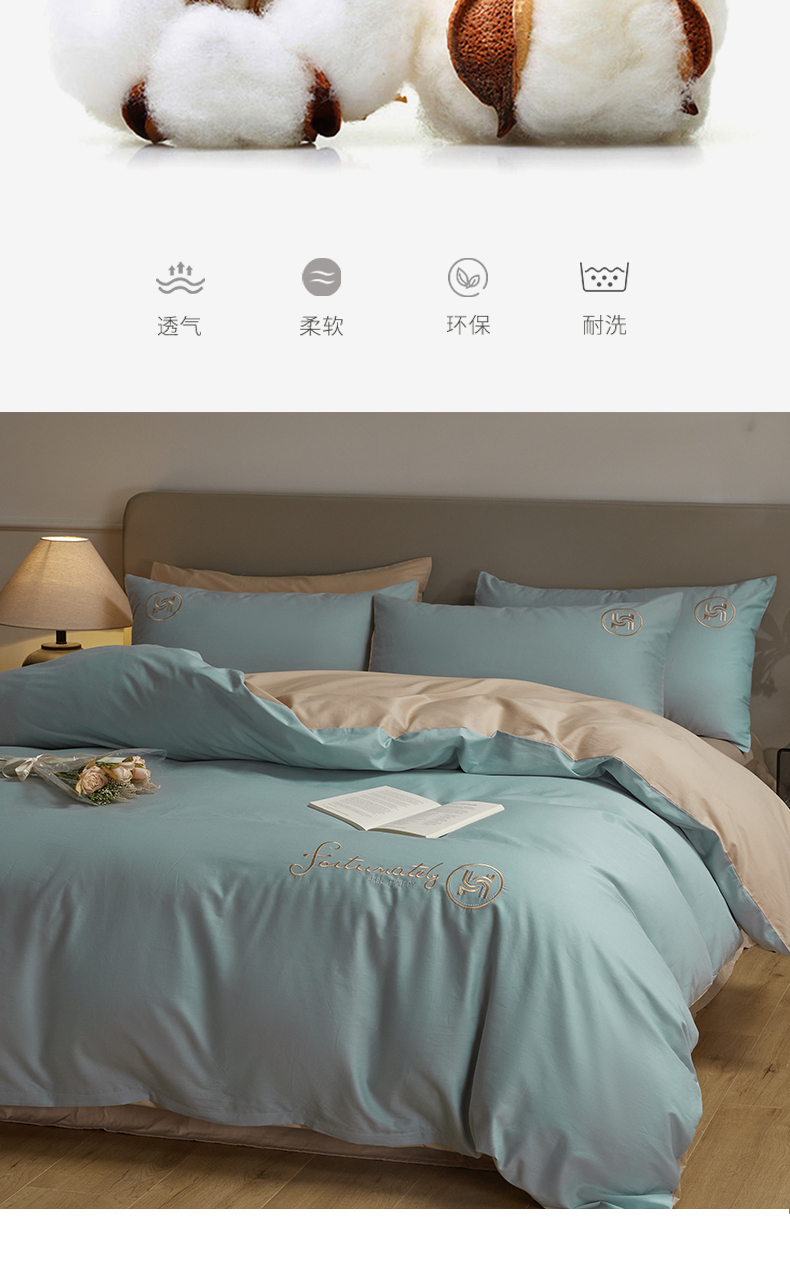 商品名称:2024新款纯色双拼绣花纯棉四件套 繁星蓝