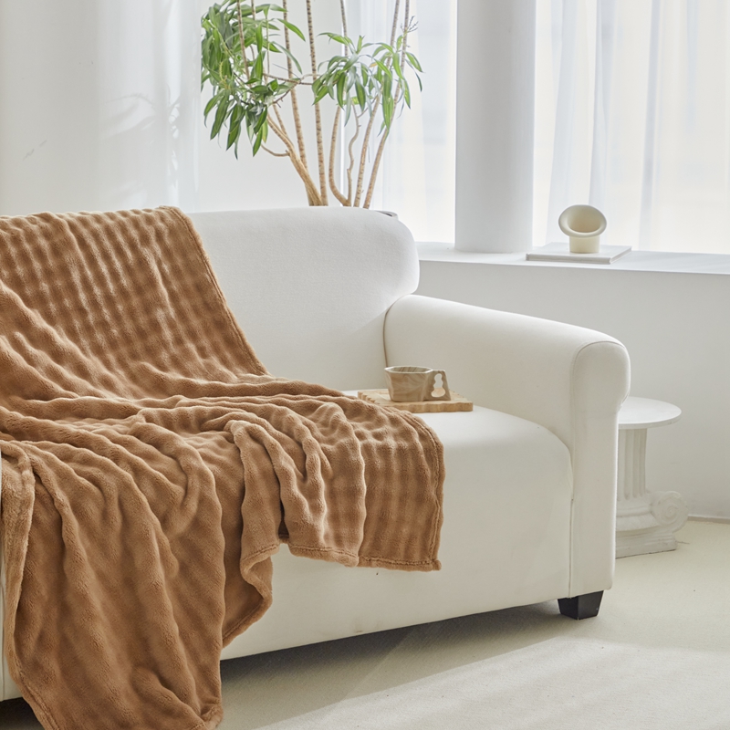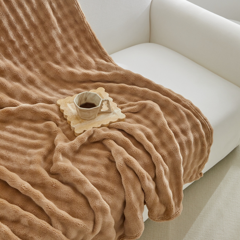 商品名称:巴木赫 2024新款法兰绒泡泡卷边毯子毛毯 卡其